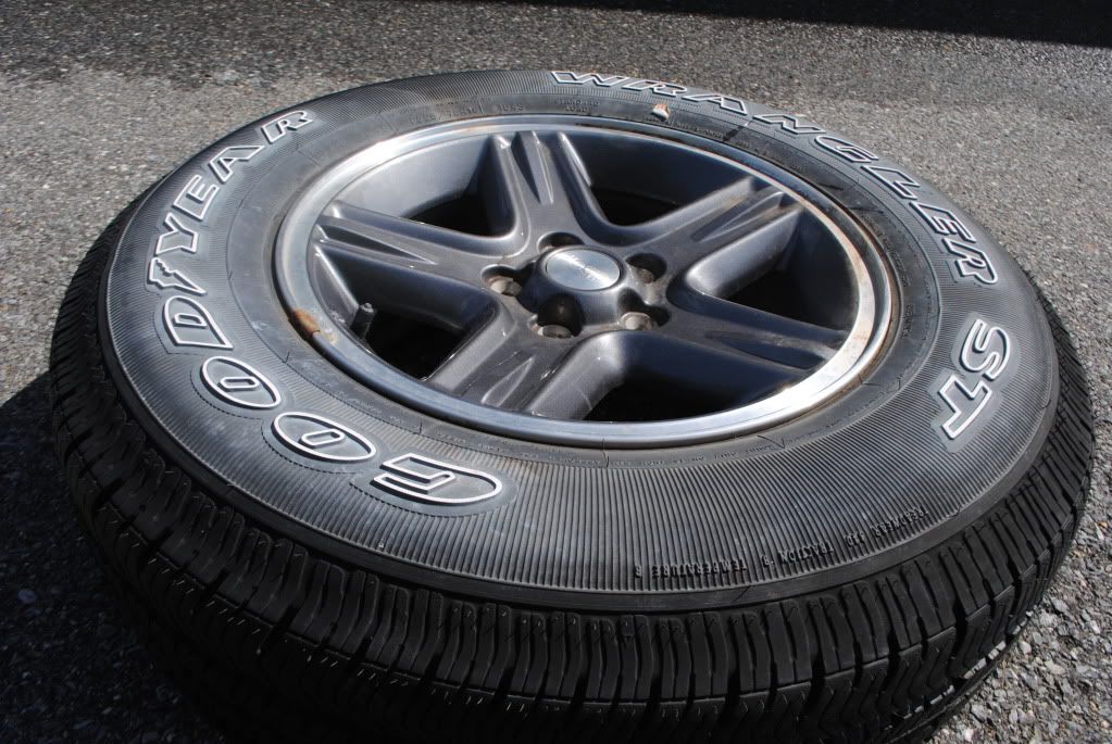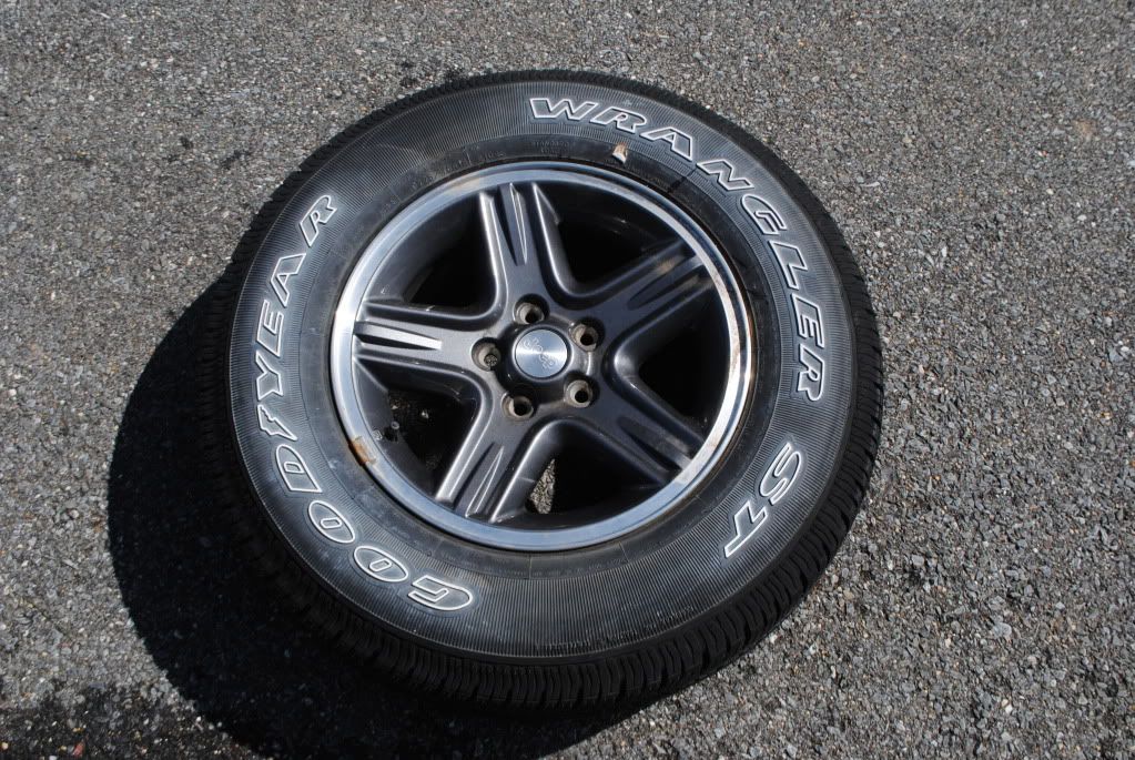 I have 1 16" Jeep wheel and BRAND NEW tire. Tire is a 225/75r16 Goodyear Wrangler ST that is 100% tread. Bolt pattern is 5x114.3. Price is $75. Would prefer local pickup, however I will ship on the buyer's dime.