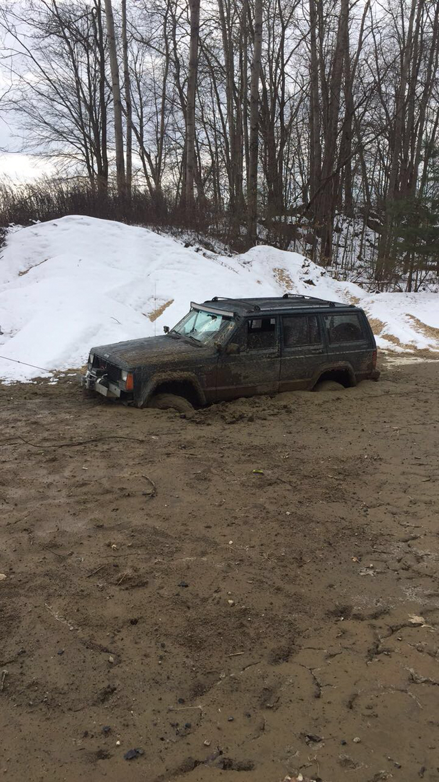 Less than an hour after pulling my buddy and his TJ out of a swamp, I failed to stay far enough left in this hole and spent 45 minutes getting the old girl out. Time for a front locker