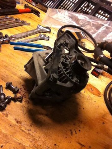 I have hit a roadblock however with the silly alternator. For the life of me I cannot figure out how it goes back on. My pre-removal pic is not telling me much. I've searched this site, other jeep sites, google search and no clear pictures. If someone here can help me out I should be able to get the thing running again by the end of the weekend. All I really have left is alternator, AC, power steering, radiator, fans, add fluids, install battery, cross fingers, turn key. Thanks in advance. Mike |