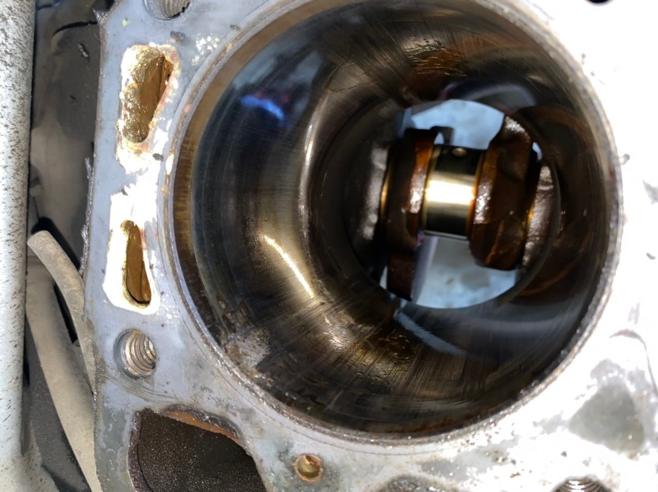 I found a small chunk of metal on top of the piston when I pulled the head. My guess is the piston cracked some time ago and finally broke, maybe causing the jagged edges to scrape up the wall and piston skirt?? Idk that’s my best guess