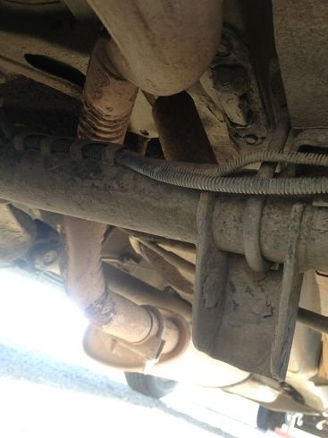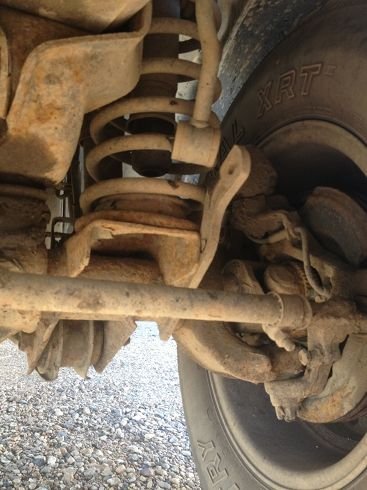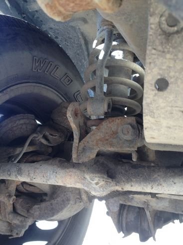 I took a couple quick snapshots - looks like the mounts in the front are sitting there wishing they had a swaybar, and in the meantime, rubbing up against the shock coils.