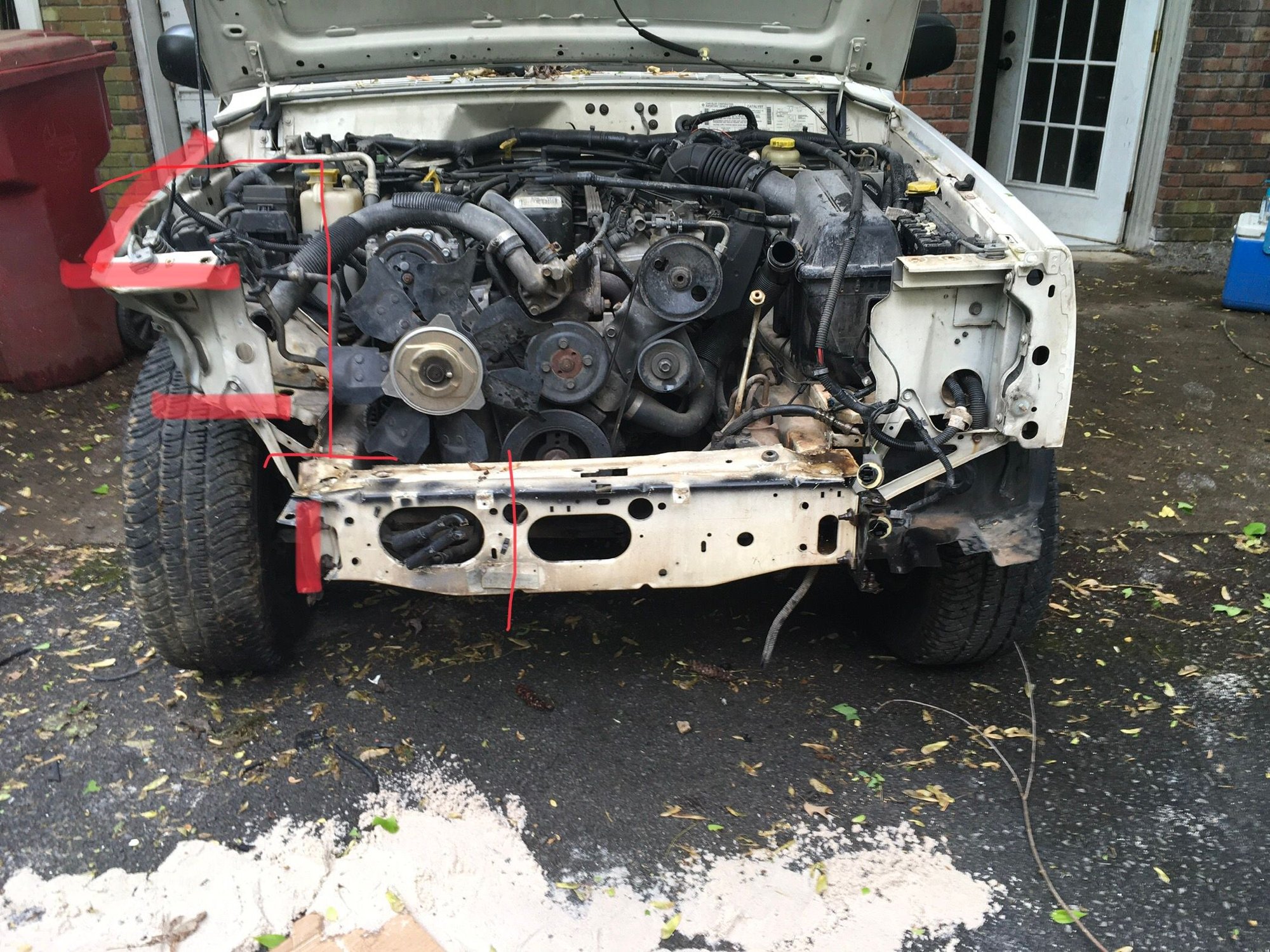 Upon removal of radiator, I inspected the uniframe cross member where the forward bumper mounts.