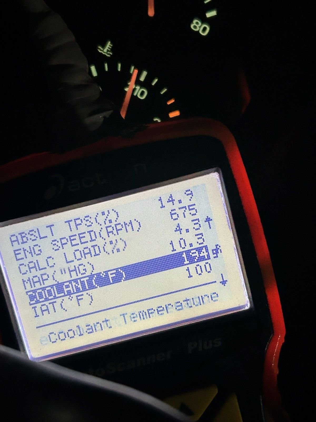 These are with my robert shaw 195 ..after a 30 min highway cruise into work at around 30 deg..Remember with late model single source instrumentation there is no available backup comparison. No matter what the actual coolant temp, the gauge and scan tool will read exactly what the sender puts out no matter that its accurate or not. You will never know without additional external testing.