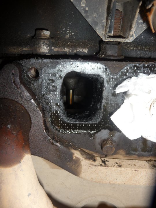 So I had a feeling that I had a crack in my headers since recently my exhaust noise has gotten a lot worse. I pulled the intake manifold off to find a crack in my rear cylinder header that is cracked almost completely around. My intake ports on the block also have an 1/8 - 1/4 inch of black (carbon?) buildup and the inside of the intake manifold is filthy.