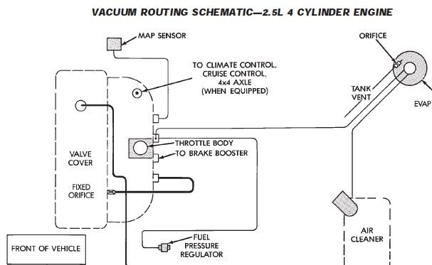 On the 4.0, the rear one has a metered orifice and is connected to the intake manifold. Using vacuum, it draws crankcase fumes into the intake to get burned off. Fresh air from the air cleaner gets drawn in through the front.