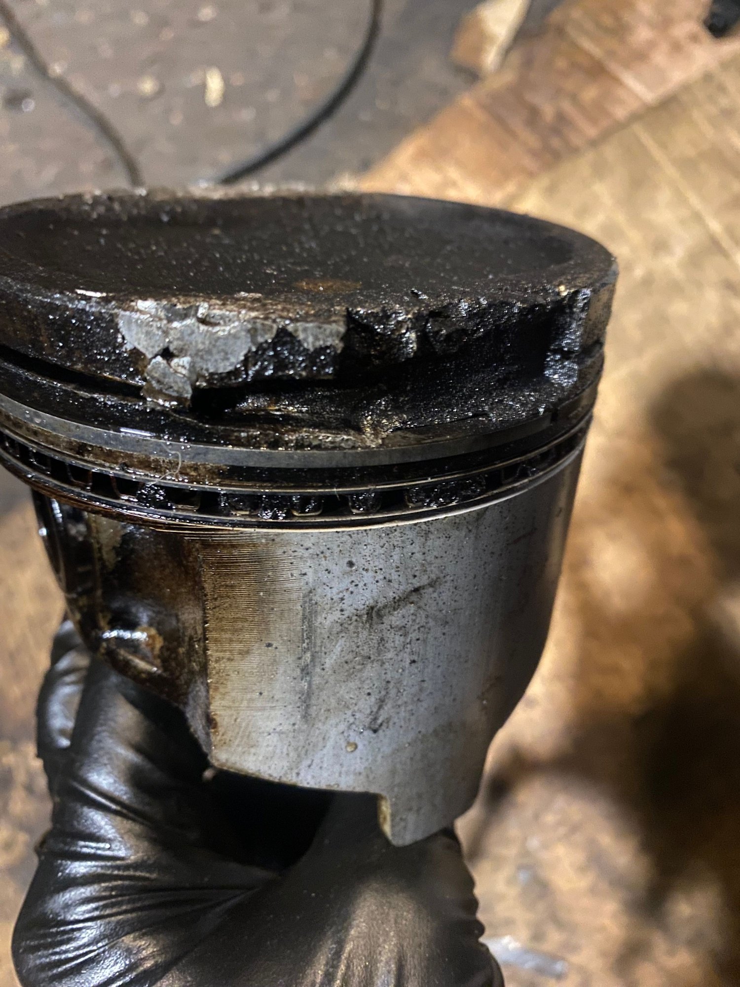 Coolant leak- overheating on cylinder 6- banging detonation in no 6 destroying the piston.
