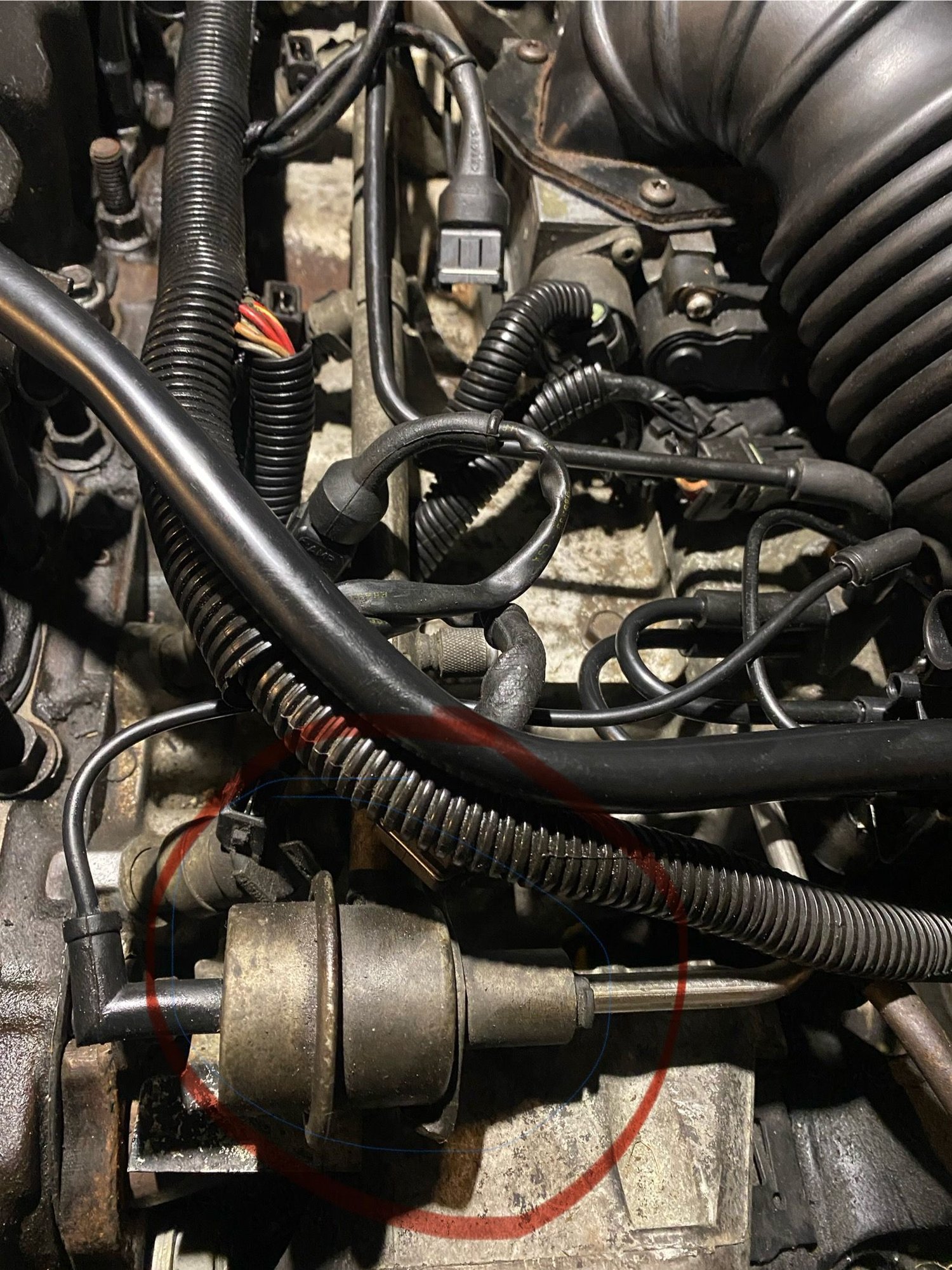 At low rpm/higher vacuum... as sensed by the black elbow and vacuum line back to the intake, the regulator bypasses fuel back to the tank..therefore lower pressure at fuel at the rail. At high rpm/lower vacuum, the fuel is blocked from bypassing and you have higher pressure at the rail and your injectors. If the internal diaphram in the regulator is compromised ...fuel is sucked through the black vacuum line and dumps directly into the intake manifold causing very rich running. You might be able to test it by sucking on the vacuum port with a piece of hose and if you can suck air its blown, but usually we just disconnect the black elbow with the engine running and if fuel spills out of the regulator its shot.. The connecting rod bearings are easy to replace with pan off...the mains are slightly more of an issue. You need to verify your dimensions and get new ones before your reinstall.