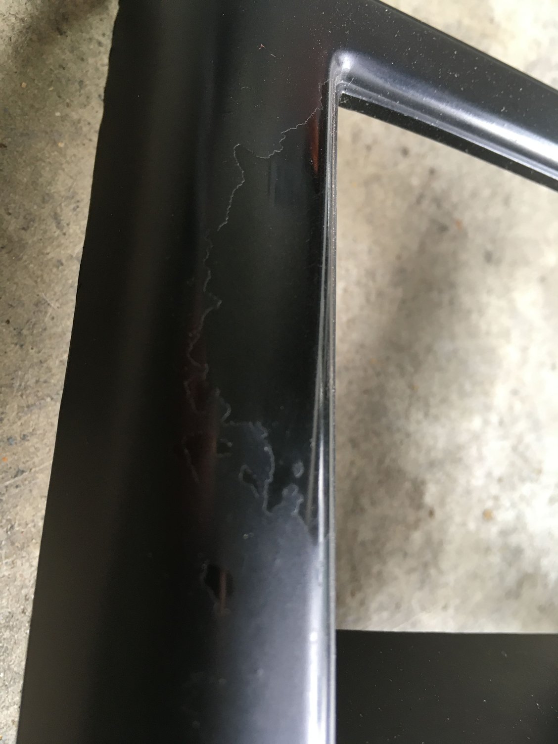 I'm not sure what the best way for me to prep it would be. My thoughts were to use fine sandpaper like 2000, but I'm not sure if I should scuff the whole piece or maybe just the spots that still have clear remaining. I'll probably just use water, maybe soapy water, to clean it because I'm sure acetone would discolor it. You can see it had a Jeep sticker on it at one time and I'd like that to not show through the clear. Also, I wonder if I should use a back to black trim restorer before clear coating it.