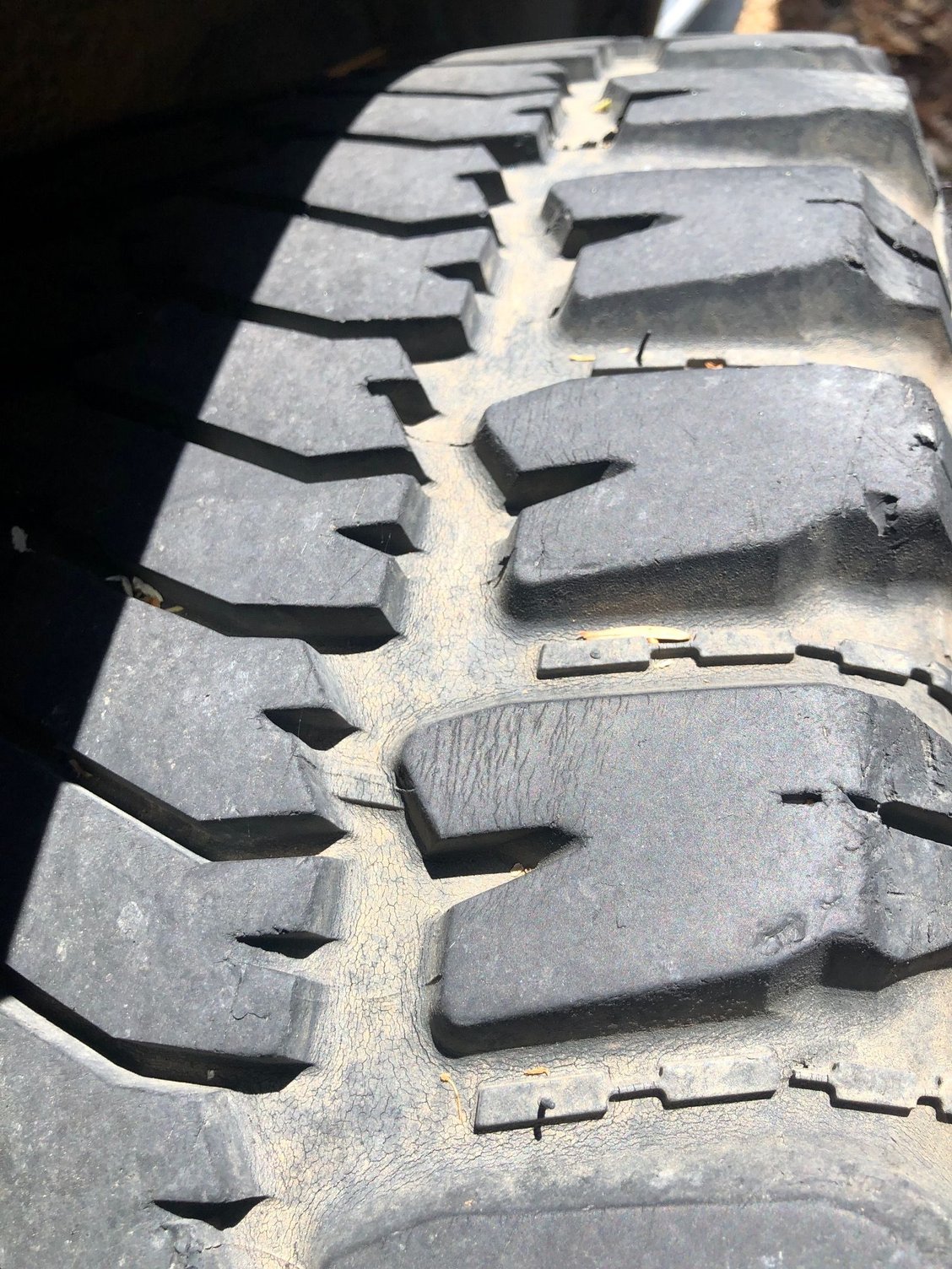 Whats up guys, have some MTRs on my jeep that are about 5 years old and started to notice small cracks between tread. Not very educated in dry rot, but I'm thinking thats what I have going on. I don't drive it much as it is not my DD, but am wanting to take it out more often so I am trying to make it more user friendly. Anyway, is this something that needs to be addressed ASAP? Let me know what your thoughts are? Took it out last week and didnt have any issues, but was definitely worried. Id love to upgrade to some 35s but we will see what the wife says about that... would also probably need to regear with my 4.10s