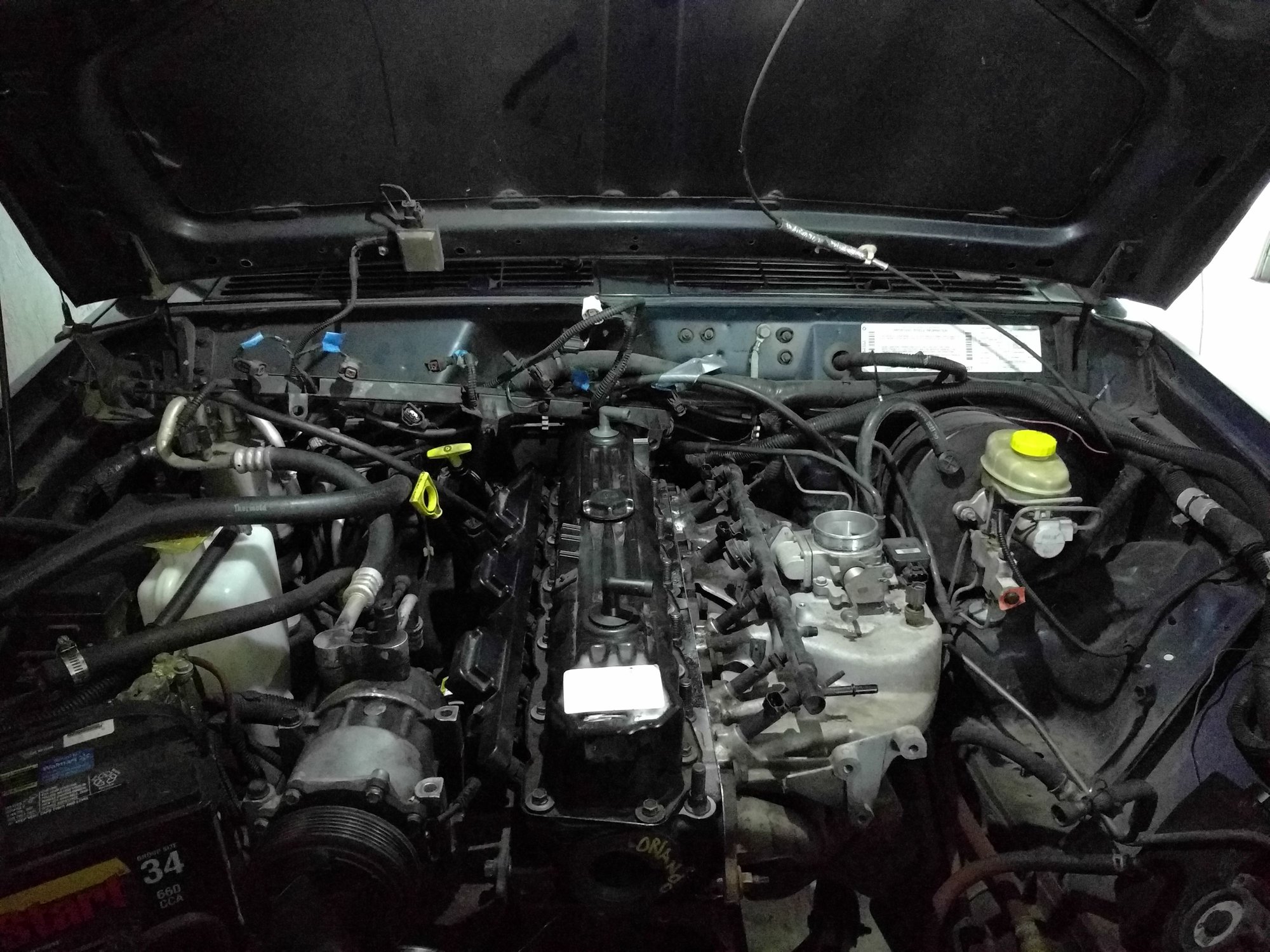 Just wanted to post how I removed the 2 lower bolts towards the back of the engine. I removed the idler pulley bracket for more room, put a wrench on the bolts, then used the butt end of a hammer to push the wrench and break them loose. Once they were broken loose I was able to use the wrench with my hand. I just could not get enough torque on the wrench with my bare hands to break them loose because my arm was extended too far. I also tried from underneath using a swivel head with extensions and a ratchet. It just didn't seem like I was getting the correct angle, and getting a good bite on the bolt head. I was afraid I was going to round off the bolt head.