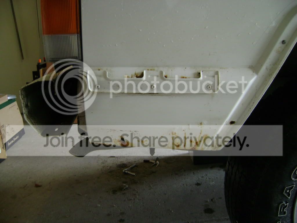K got the pics and i pulled the bracket off the drivers side as well and found some surface rust. so i grinded that down and its primed now. I also am going to fill the holes for the brackets and then bedline that area and my rockers.