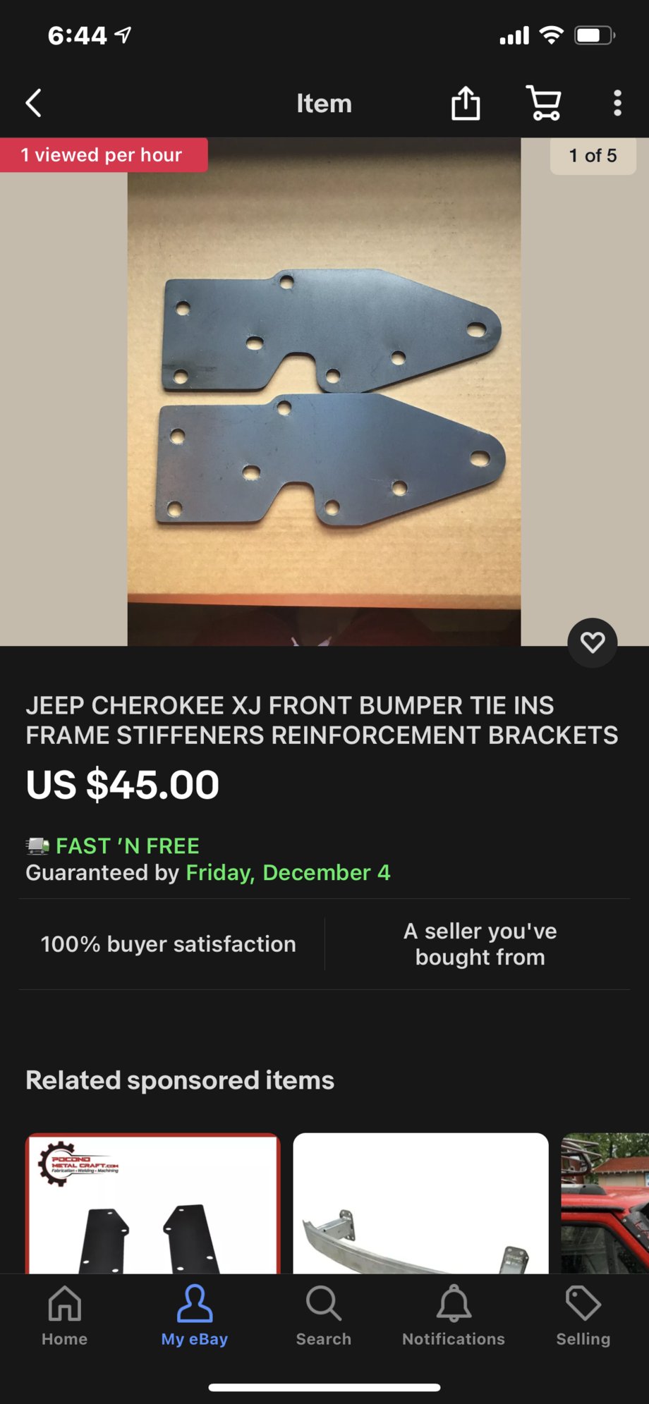 Little update finally got around to getting the bumper off. I grounded down the welds and it after wiggling it broke off!!! I got a set of front frame tie in brackets and a better steering box brace and put it all on!! I kept the tires on the ground when I did that steering box brace and it went on with a little fighting but I got it on!!! The thing now is my steering has more play in it than before and my steering wheel isn’t straight when the tires are straight!!! Idk what I possibly could have done. The steering before the the brackets and steering box brace was way better and to add where the steering shaft goes into the box leaked a little while I was positioning the box up to the new brace!!! I had to use longer bolts on the steering box because of the brace like 7/16 by 6 inches!! 5 inch long bolts would of been ideal but Lowe’s or home depot didn’t have them. I’m gonna get the right ones at fastenal tomorrow. I also had to stack some washers on the the bolts so they would grab and torque down. Whatever wreck the Jeep was in before was little worse than expected but the insurance passed the fix with a salvaged title!!!
