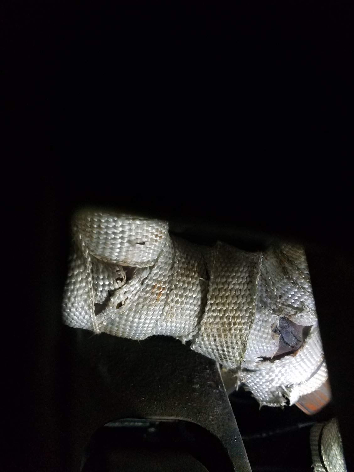 My header is wrapped in this fiberglass cloth, which I assume is not factory and was done by the PO for some reason. It caused it to rust through in at least 3 places. It also caused me to not be able to see any of the holes without doing that smoke test. I also think maybe it was muffling the sound a little because I couldn't hear the leaks. But I can now that I know they're there lol.