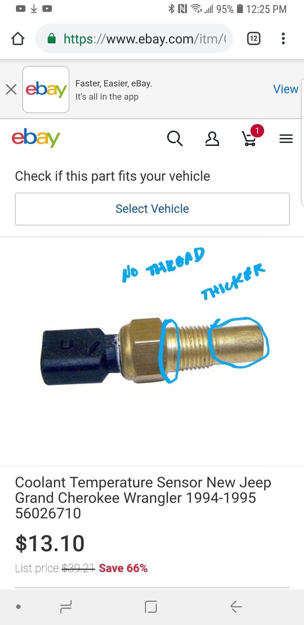 Oh great now I am at a loss myself here. I picked up one from RockAuto...and it looks very similar to the original picture. But it is actually called a temperature sender/sensor. I went to replace it and the connector(on the sensor) crumbled in my fingers so all I had left was a lead sticking out...I then checked the jeep and it had no effect except my gauge read 0 for the temperature. I couldn't get the old one out so I just stuck the connector back on the lead sticking out and the gauge started working again. I just don't have the right wrench and I am not gonna strip it. Pain in the butt at the end of the valve cover dug in there like a tic. Now I am kinda glad I did not remove it yet. BTW I have a 96 4.0 HO engine in a 94 chassis. After reading all this I was quite confident I had the right part but now I am a little sketchy on that. Mine of course is single prong looks like #3 in the criminal lineup. I think I will go back and check some links. Interesting stuff here...