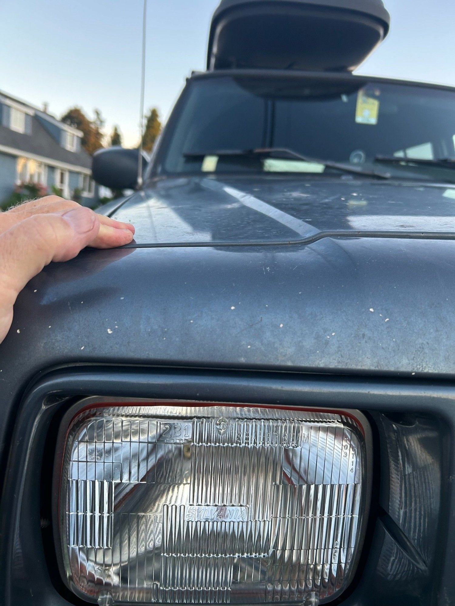 my hood does not sit all the way down against the front fairing untill pressed with hand. I think this causes turbulence which makes my washer spray suck at speeds above 45. Only sprays right above wipers, but works normal at slow speeds or stopped. Cant seem to find an adjustment process
