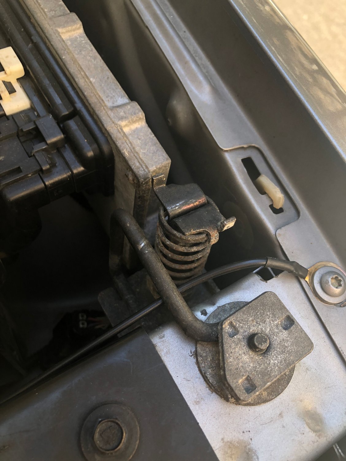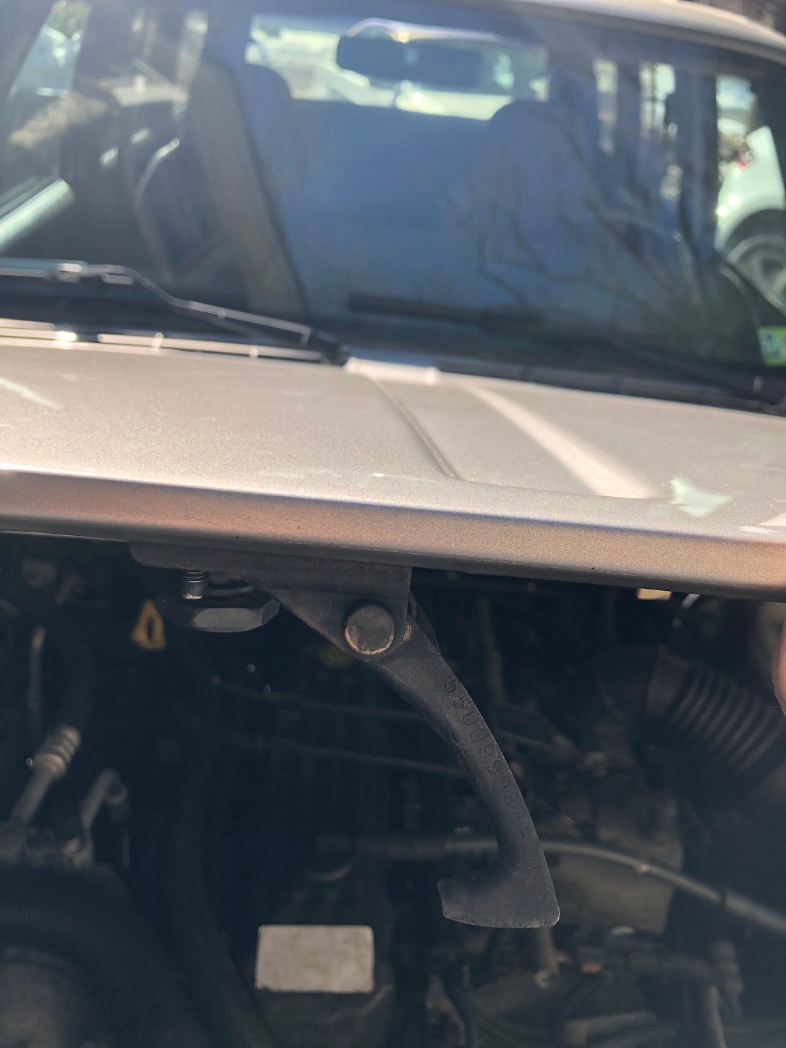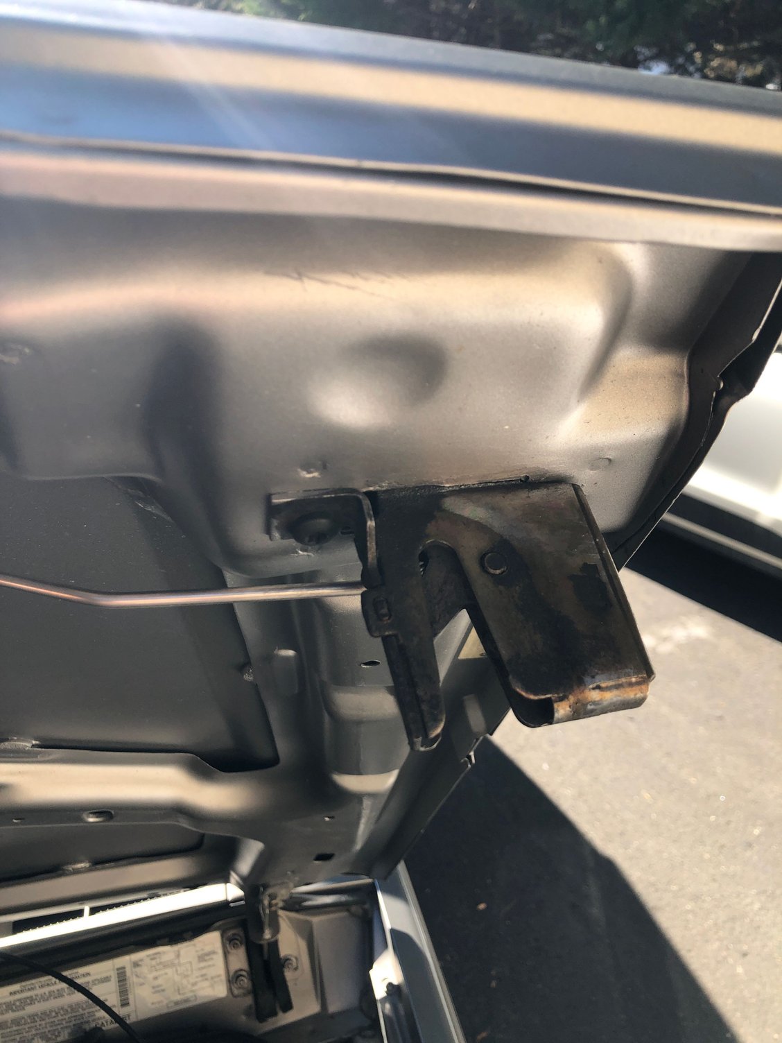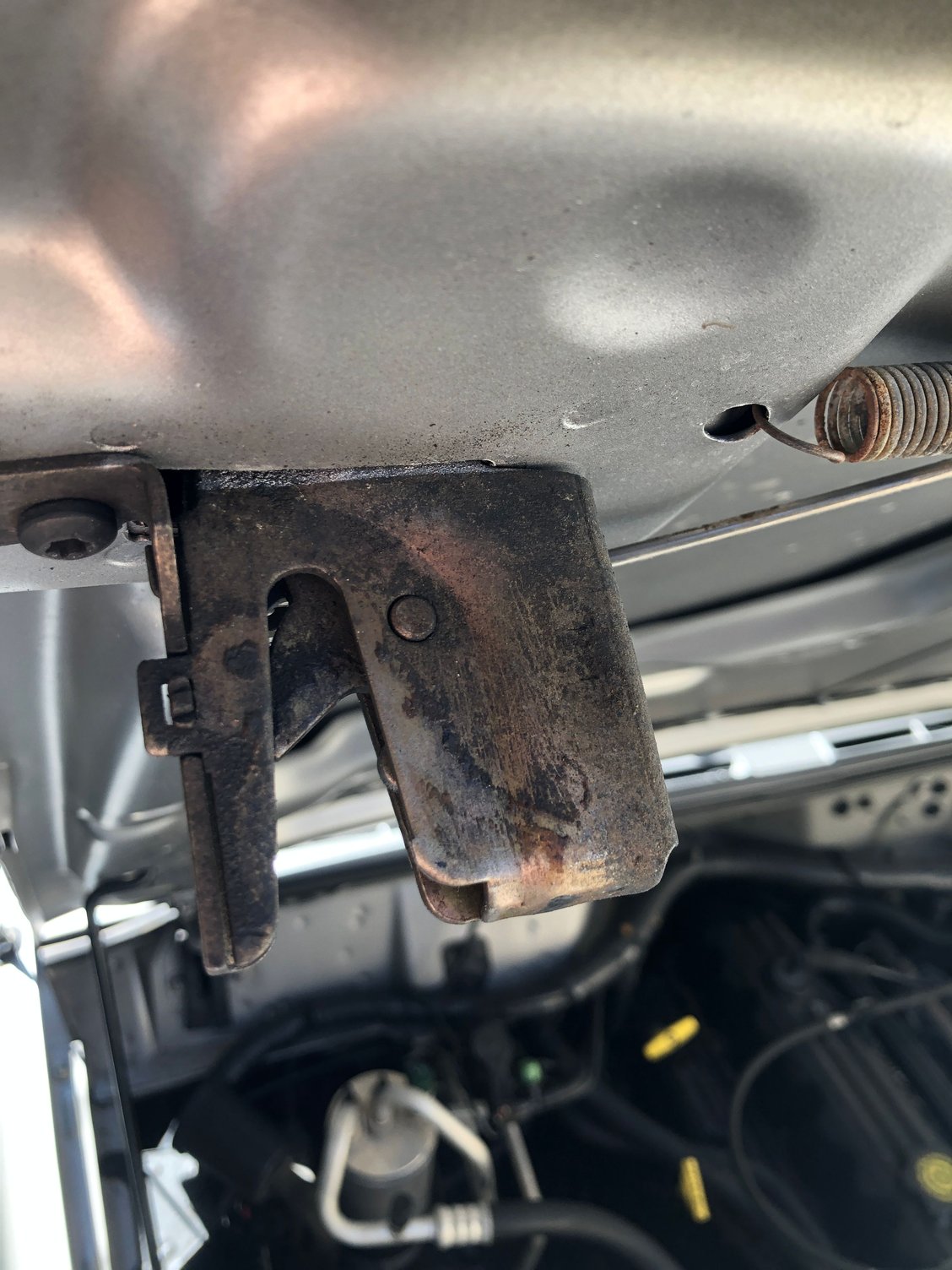 Passenger side - not bad! Drivers side - popped up Passenger side - good! Drivers side - popped up View of how front end is aligned with side/hood Good latch Spring/bracket Good latch Other good latch Other spring/bracket