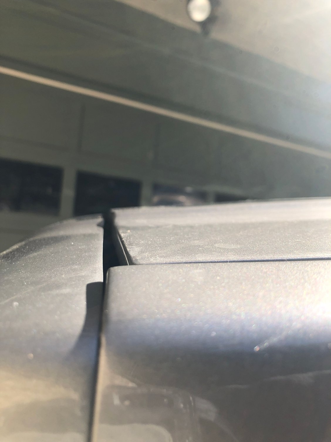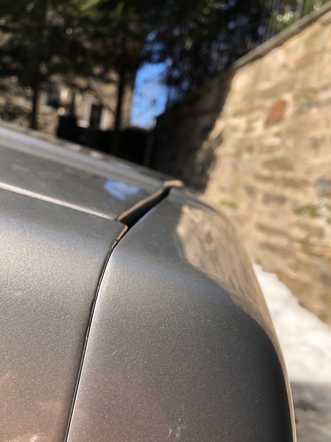 Im leaning more towards the header panel being off due to a fender bender that still needs work. Thats my take on it.