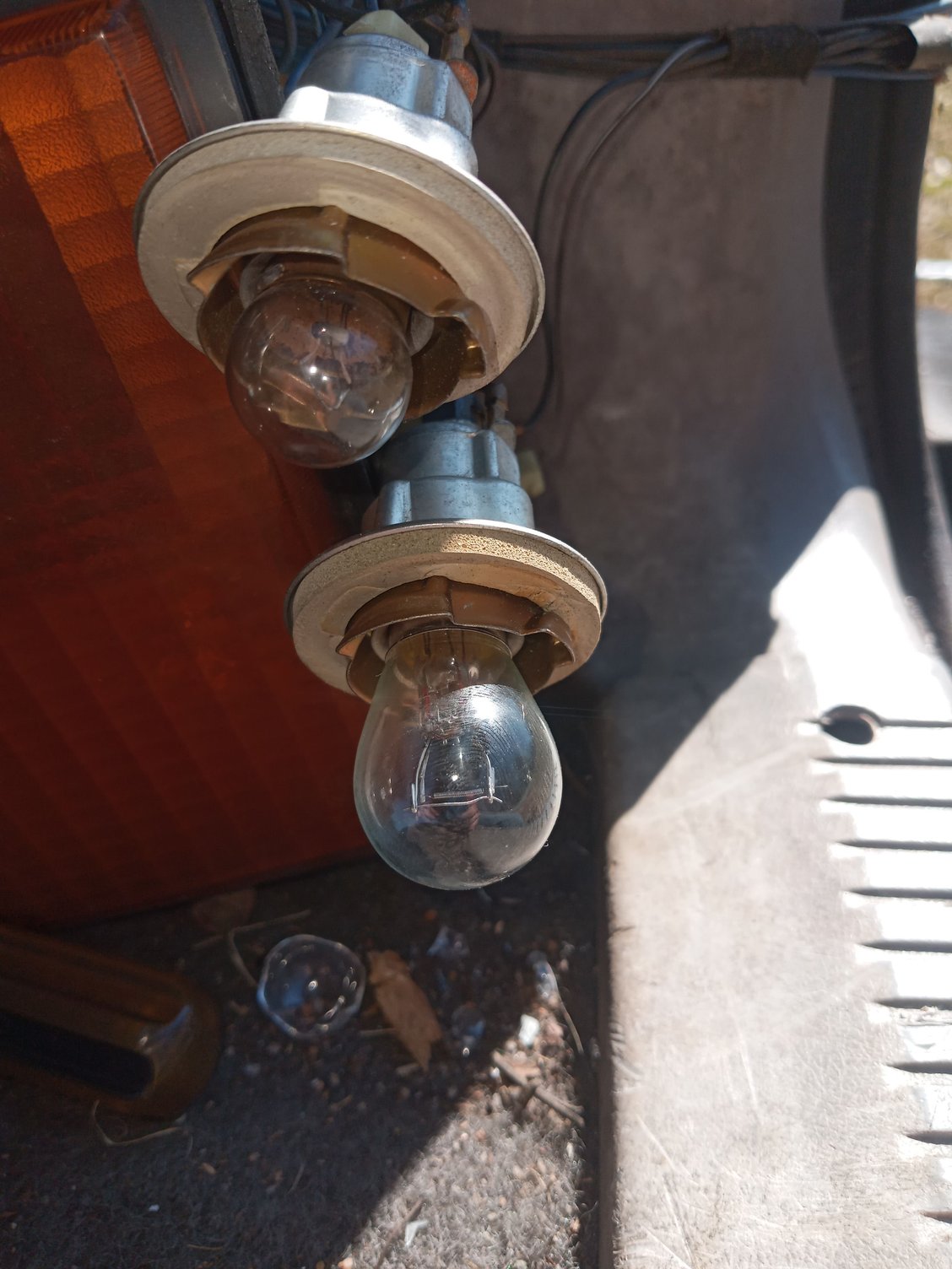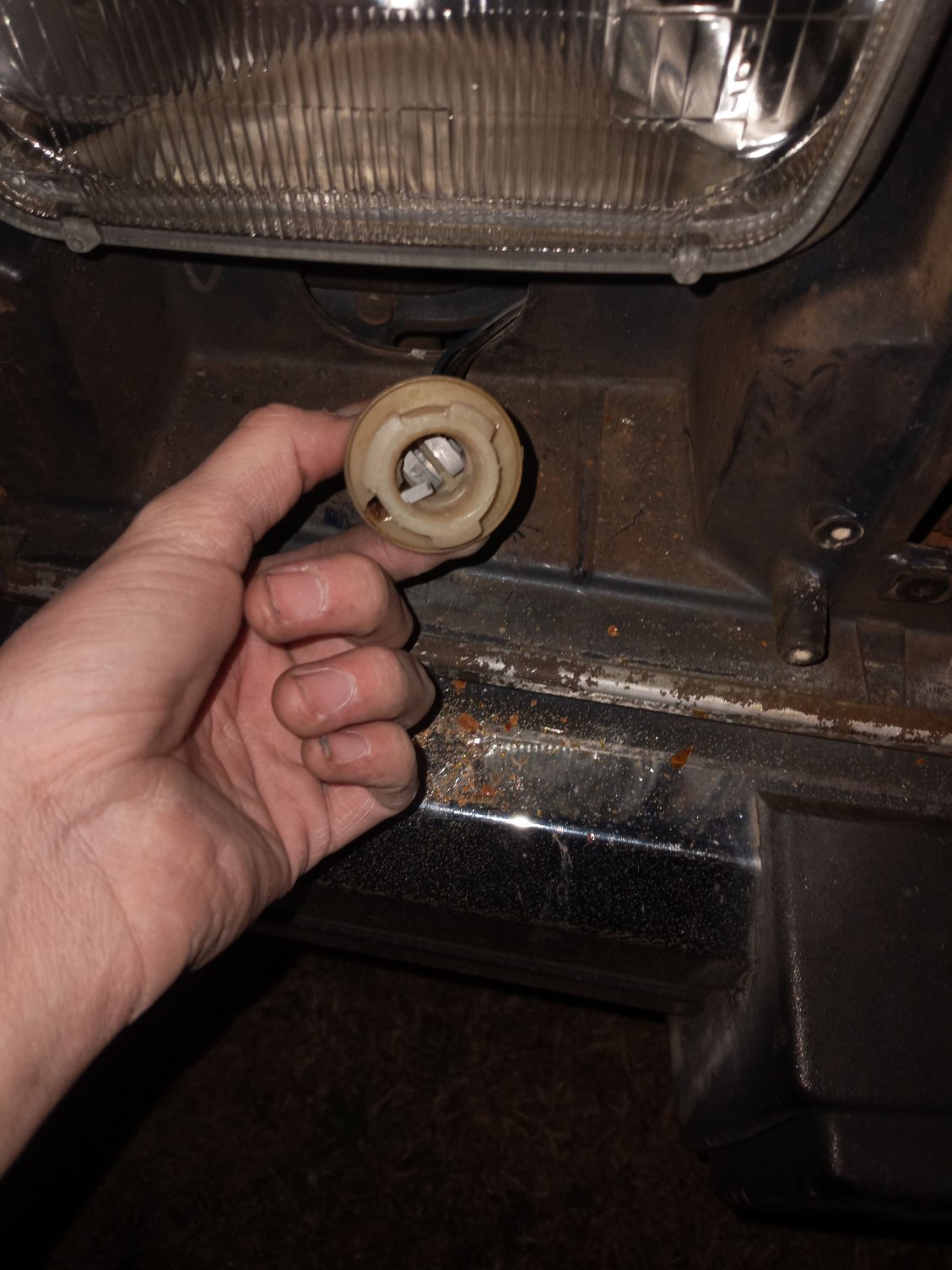 Oh, I tried for a minute to wiggle on of the grounds out of the rear sockets so I could sand it. It wouldn't come out but it will move around. So not sure why they won't slide out. This is turning out to be reallly aggravating for something that should be simple. I don't know if we can even buy new sockets for our jeeps and besides I doubt I would be able to afford all new sockets right now, because I bet they would be $10 to $30 a piece...So basically, a trip to the junkyard and hope I find good ones (don't even know how I would check other than looking at them) or I am just effed for the moment.