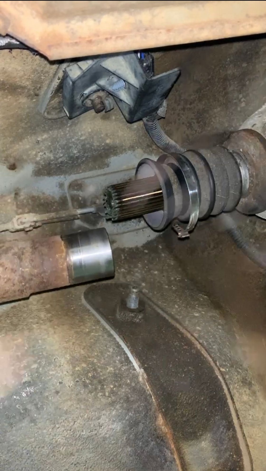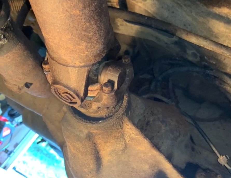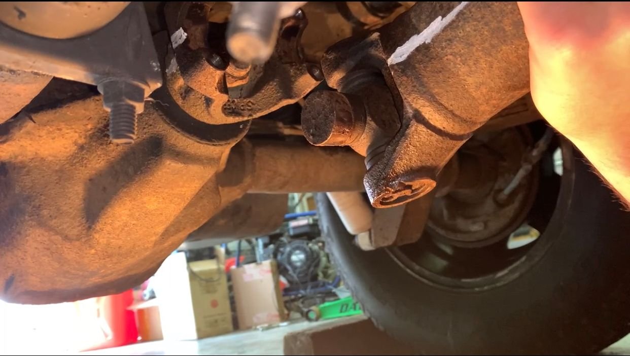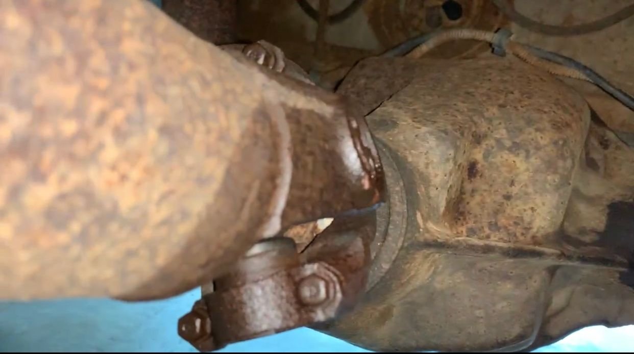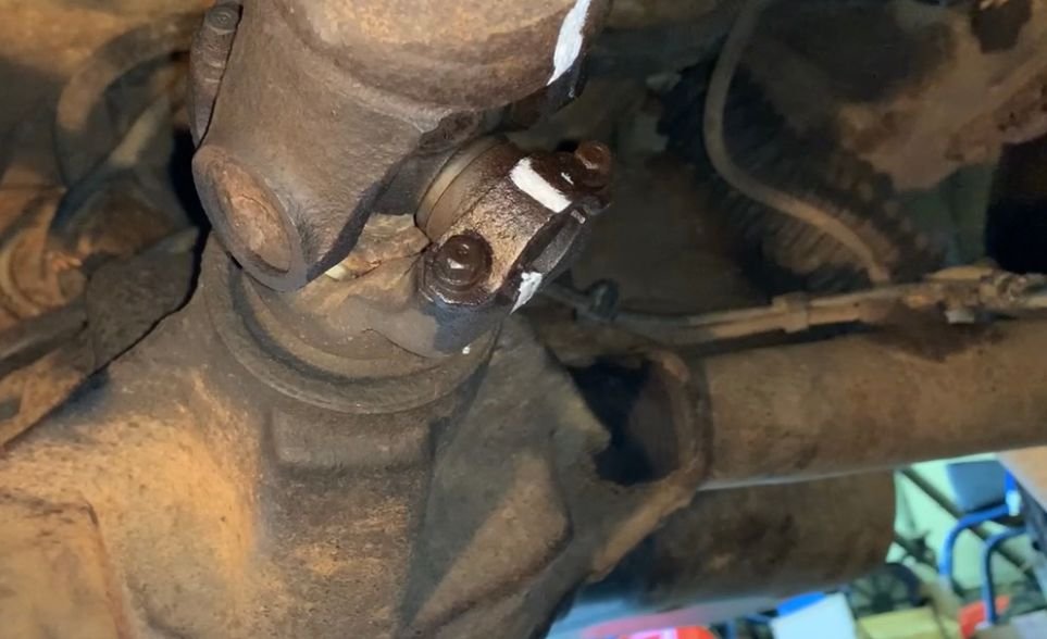 You can see 2 of the 4 bolts here, and a bit of the 3rd bolt at the top, I can’t take a picture of all 4 bolts because, well, there’s a driveshaft in the way. Spray these at least the night before your job.