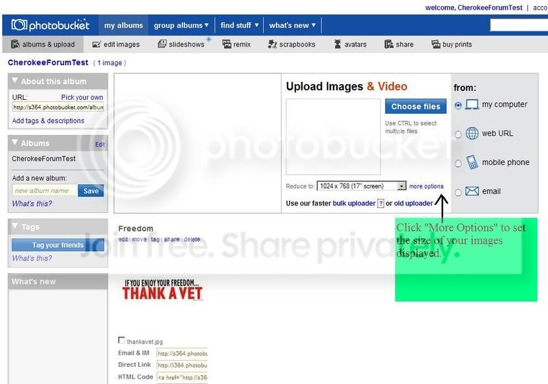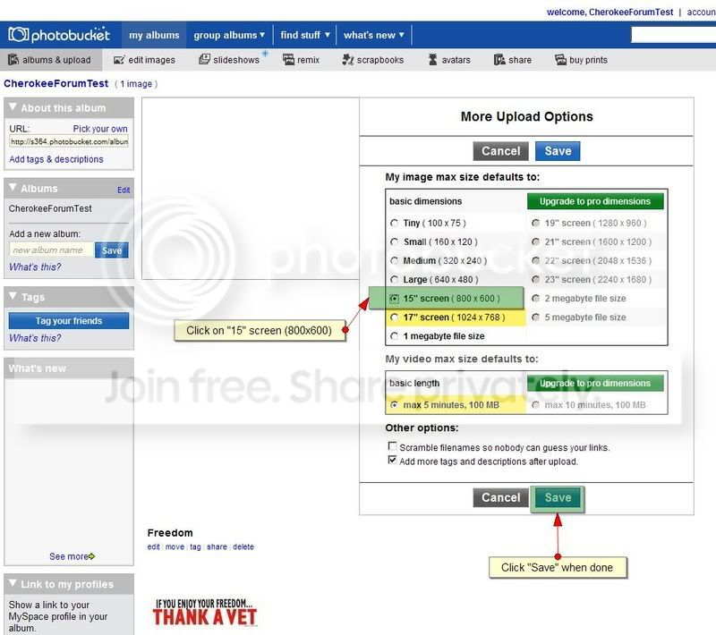 B. Resize the image hosted in photobucket. You can set the size that you want all images to display at when you share them within Photobucket.