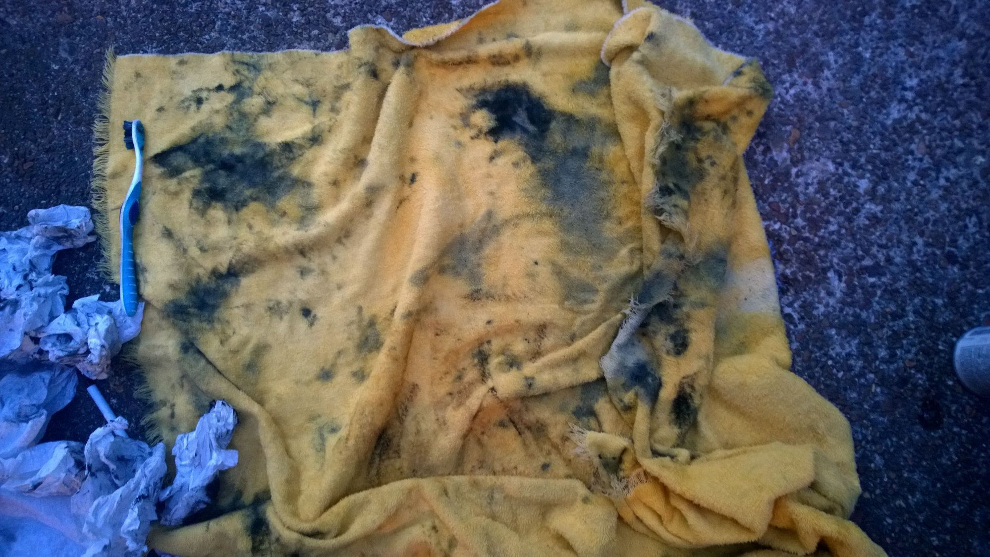 Not so yellow towel after cleaning throttle body.