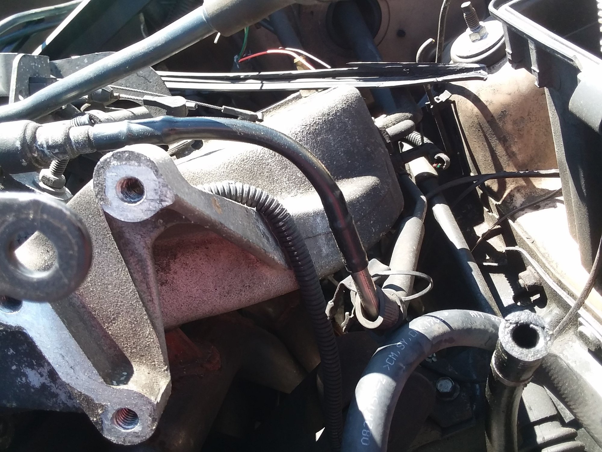 Here is where the vapor line terminates on my 1996. In 1994 the metal line followed the path of that tube longer: