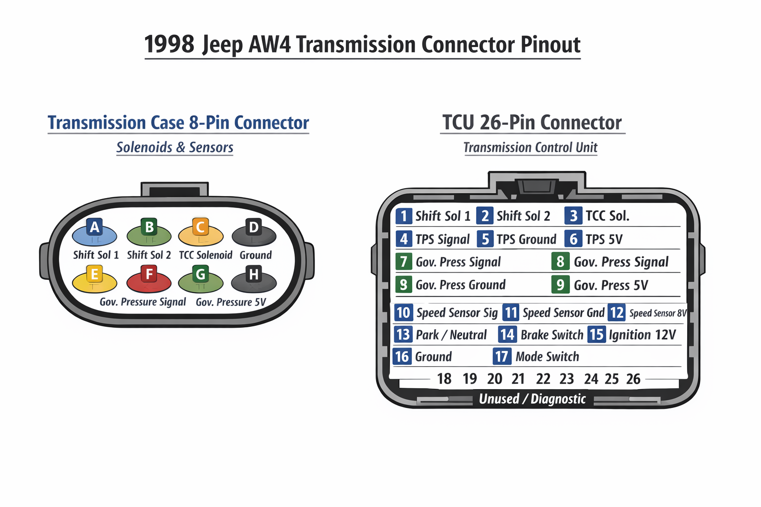 I can give you the exact wiring colors and the AW4 valve body layout if you want to go deeper.