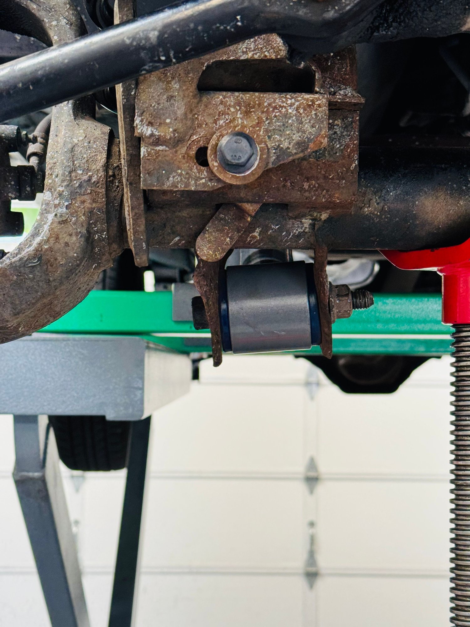 New to me 1998 Sport, automatic 2 WD. This Jeep was in a front end collision at some point in its life and among the things tweaked is the right side lower control arm bracket. I am installing new adjustable control arms and have been attempting to get the bracket back into shape, but this is as good as I can make it and still have the bolt go through. I'm assuming the previous owner had it aligned since the incident that caused this because there is a fatter shim on that side. This is a street use only vehicle. I'm lifting it 2 inches just for looks. I'm wanting opinions on whether or not I can leave this as is or whether I need to cut the bracket off and weld on a replacement. Thanks for looking!