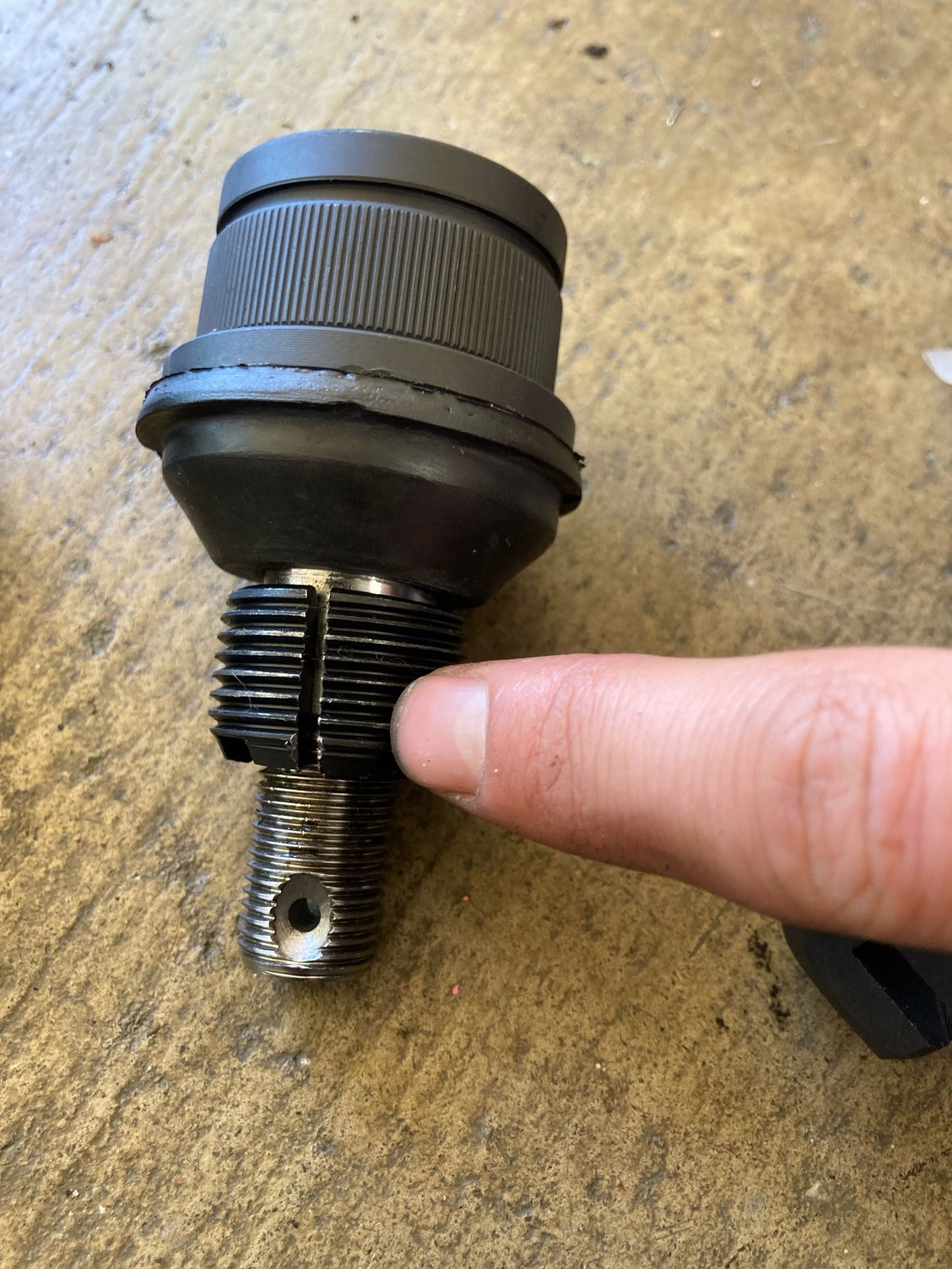 Sorry. New user here. I explored the search function but struggled finding anything. I'm currently doing the 13 piece fron suspension kit from TRQ and I've removed my ball joints, but I'm stumped at this lower ball joint. Theres a metal threading that is larger on the stud of the lower ball joint, which will prevent the spindle from going back on. Any ideas what this is used for / how to take it off / a solution?