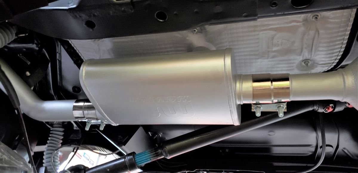 -Custom 2.5" tailpipe. Clamped on at the muffler. Needs investigation to ensure its not leaking at the joint.