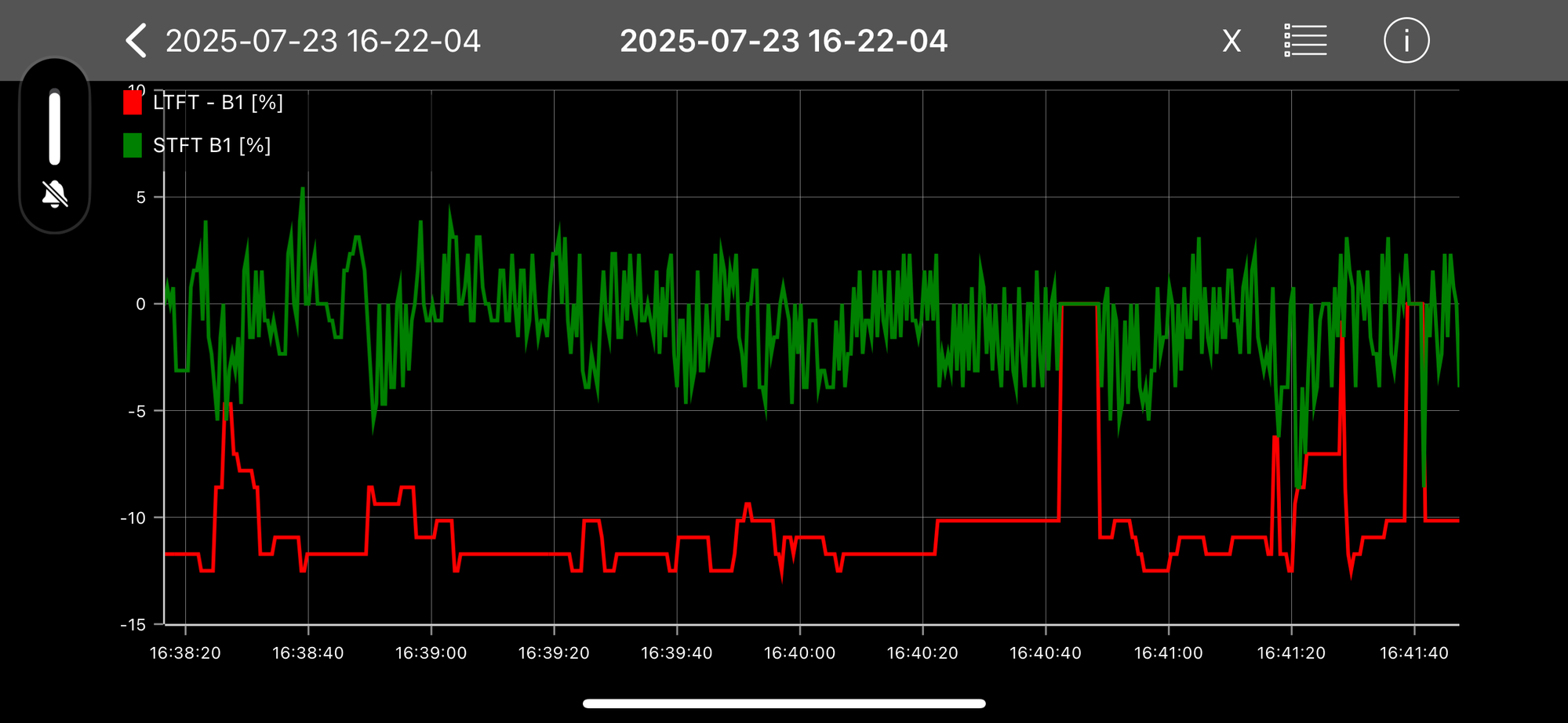 So, some data. I'm seeing my long term fuel trim is centered around -7%. It occasionally dips as low as -14-15%, but is pretty well centered on that -7%. Short term is centered on 0%.