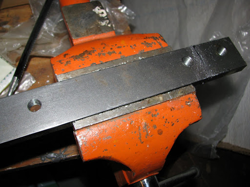 I cut squares out of an old license plate to serve as the "strip", but I fed the bolts through the license plate "washers" and into the frame. I found it easier to push the bolt to the hole and drop it out rather that trying to line the nut up inside the frame rail. The bolts I used were Grade 8 7/16 x 1". I also used Grade 8 nuts and lock washers.