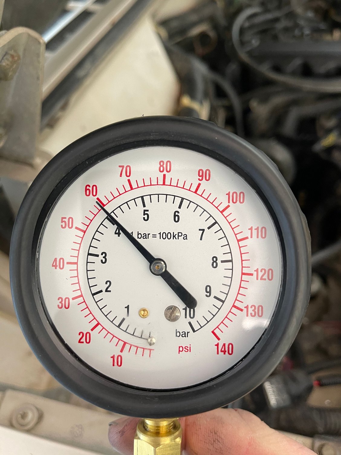 So, I put a mechanical gauge on it and after idling in my garage for 20-30 minutes and around 190 degrees, it idled at 10 PSI. On cold start, it was around 60 PSI and obviously got lower with heat. It hovered around 16 PSI for about 10 minutes. Problem?