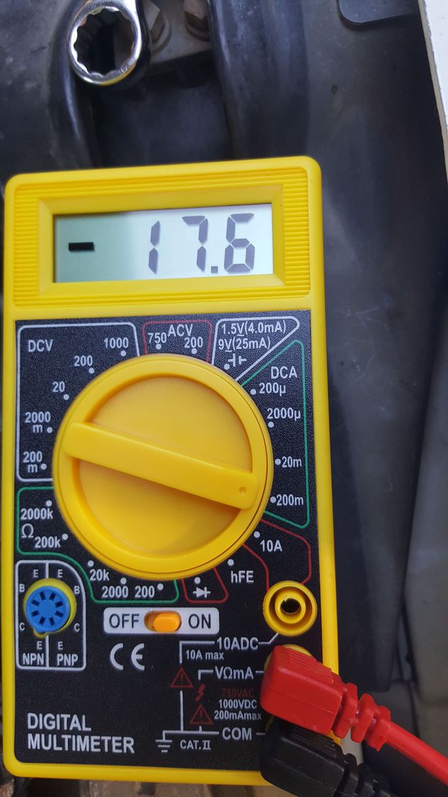 Intial stuff is: Before start: 12.20 Running charge: 13.90 Engine off lights on, clamps: 12.12 Engine off lights on, posts: 12.07 Ill get back with the test here in a couple hours with the last results.