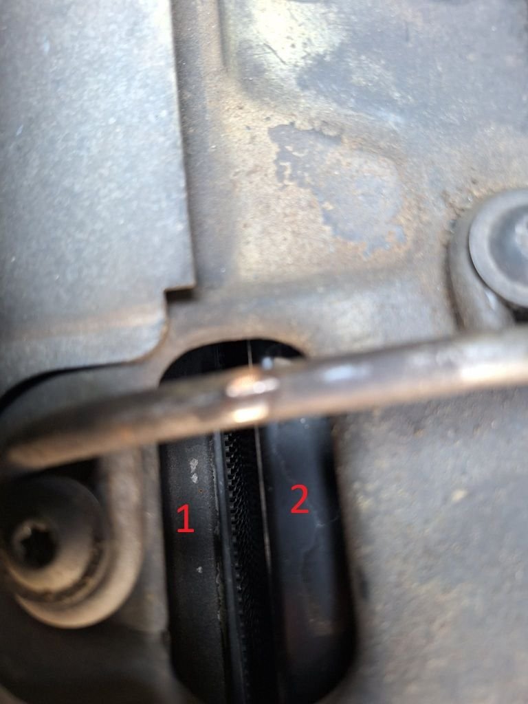 The lines going into 1 are aluminium and the ones going into 2 are rubber hoses. To my understanding this would mean 1 is a seperate transmission cooler and 2 is the engine coolant radiator.