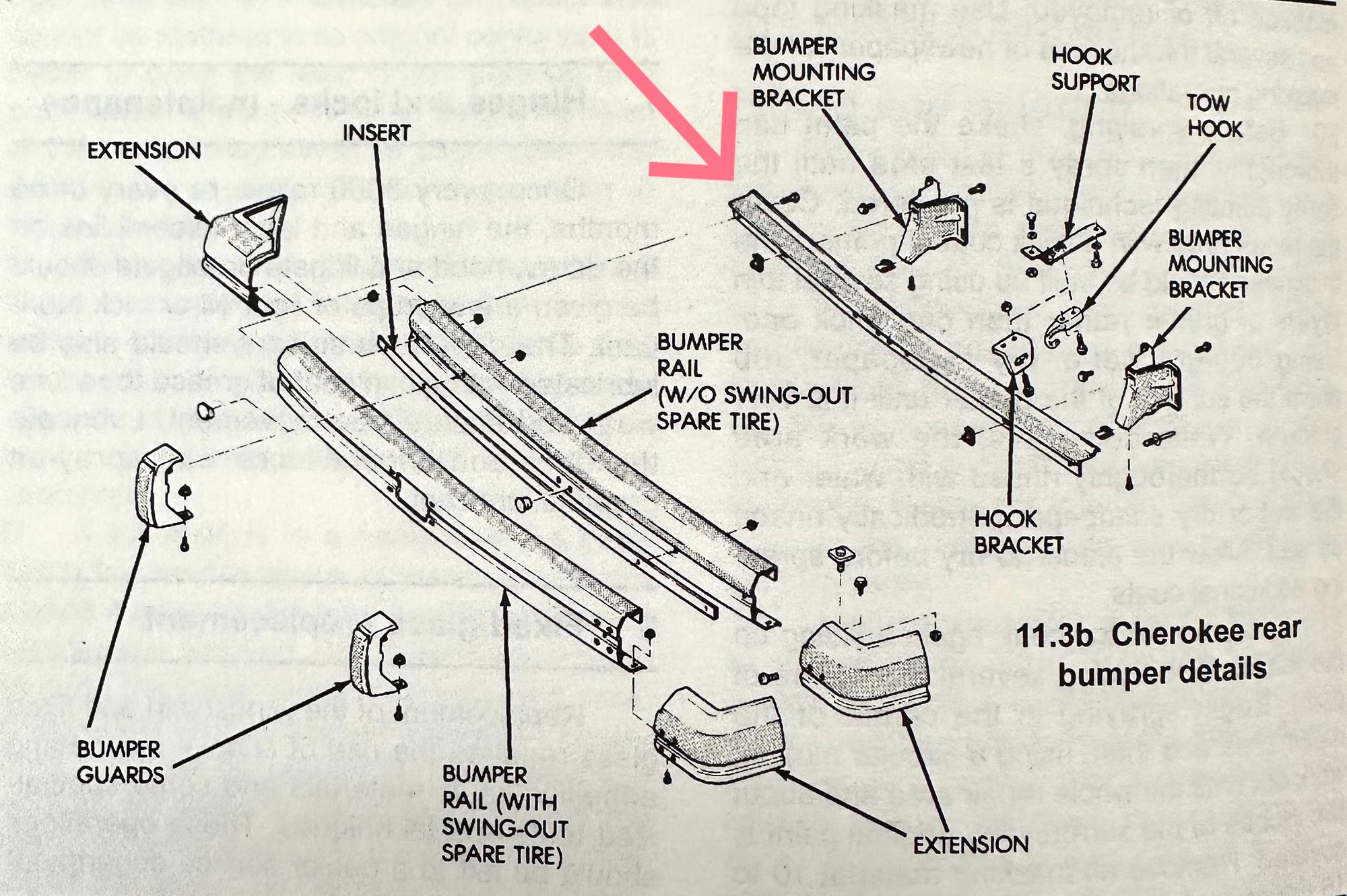 Im currently acquiring the parts to replace my rear bumper/ tire carrier with the original stock bumper. I can find all necessary parts except Im having difficulty locating the part thats pointed out in the picture below. Is this a junk yard part?? Does anyone know the name for it to possibly do a search?? Thanks for any help.