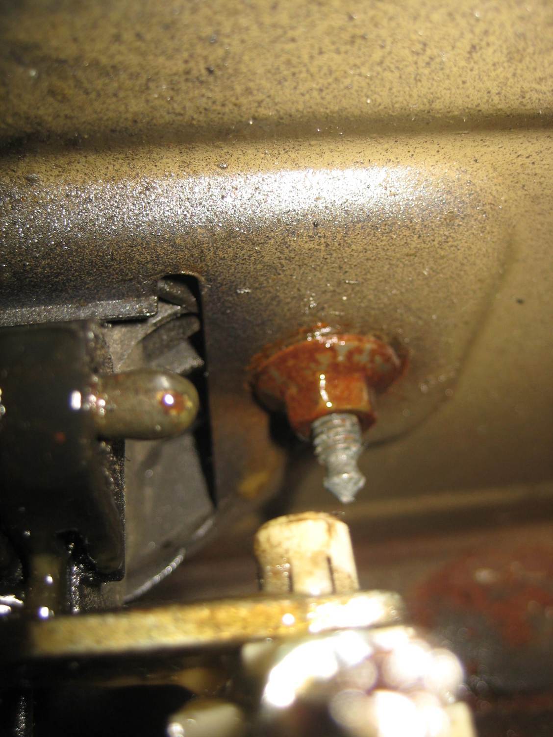 10-32 UNF. I used a nylon jamb nut on the threads to keep it from ever happening again! This nut is steel with a nylon ring in the top of it, looks like an acorn cap. 37 cents at any hardware store. I haven't put the plastic panel back on yet, but I plan on drilling a hole in it so I can stick a screwdriver thru it and pop the latch. I'll post the exact location for that hole when I get it done. I bought a large plastic push pin to fill the hole.