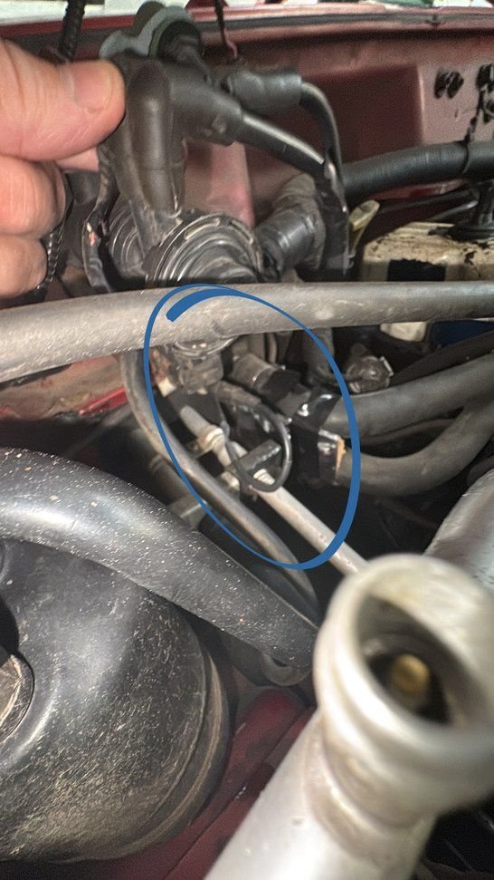 You can see in that DeXJ screenshot there is a little rubber hose splice behind the firewall on top of the air box. I just disconnected it there and got a new piece of vacuum tube from the parts store.