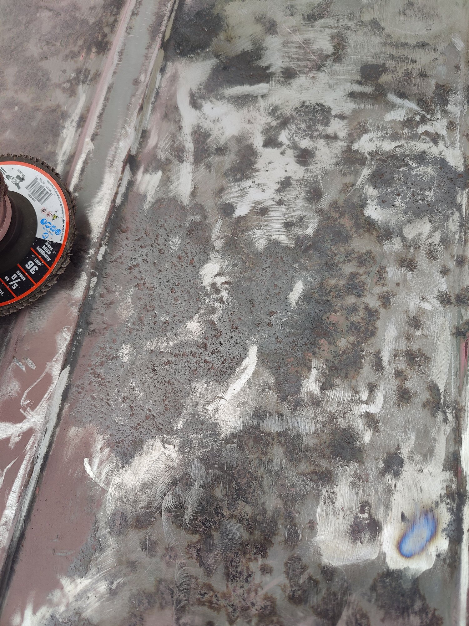 pics of the project so far: Removing the rails, pre-grinding Removed paint layers first. The worst black, pitted rust. Grinder after a lot of usage. Before trying to focus on grinding down the black rust. After an hour of trying to grind down the black rust 😥😫😵
