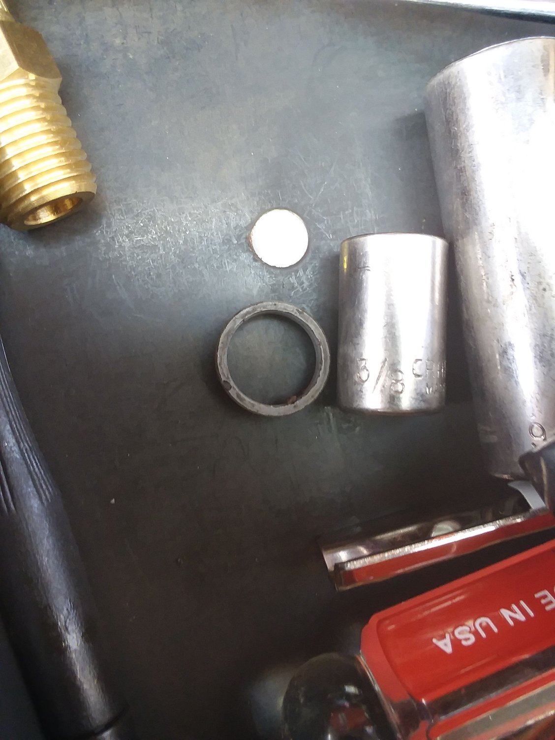The gray thing with three ribs is the gasket I have on the O2 sensor harnesses. The socket is a 3/8" for scale. The screwdriver is a shorty P1 for scale. The other gaskets are different colors, different shapes, and roughly the same thickness, give or take.
