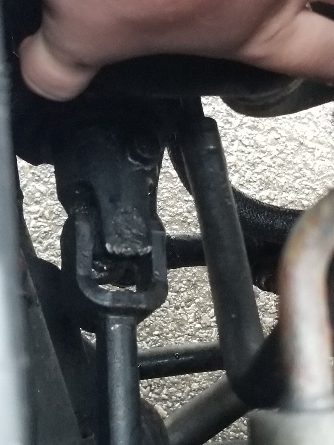 This picture shows the shaft going into the U-joint it's supposed to be flush like this. Before I pounded it in there was about 1/2 in gap between the box and shaft that caused about one inch of play in the steering wheel and made the car downright scary to drive on the highway.
