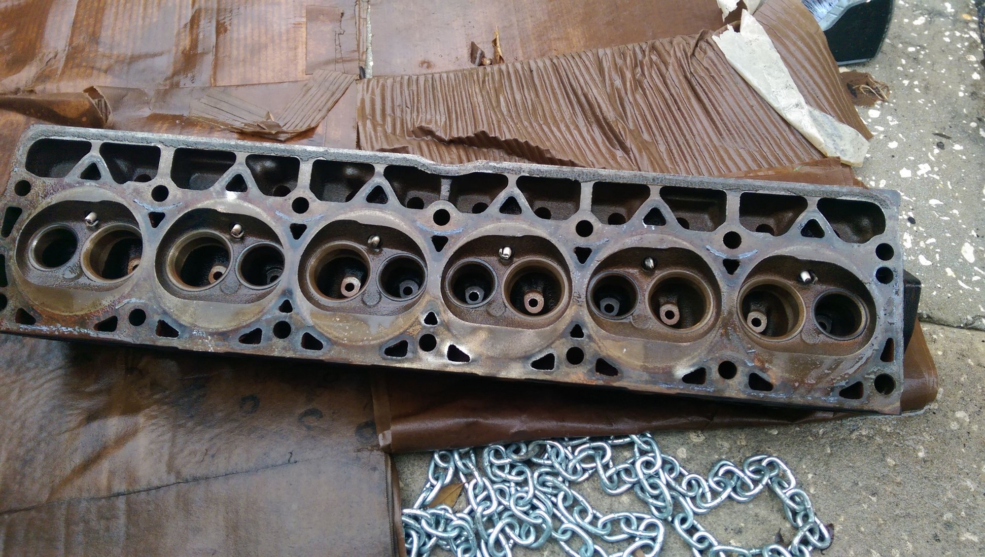 This is a very slow going process. Last night we stripped down the cylinder head. Now I need to find something to soak it in, to remove all the carbon build up and clean it really good. Over the weekend, I spent some time in the junkyard, removing any/every bolt I could imagine to make building this motor up easier without tearing down the old motor. I threw in the towel when it came to the oil pan. I guess that's easier to remove when it's out of the vehicle. That said, I couldn't get to the oil pump. I have a new one to install, does anyone happen to know the bolt size(s?), for the oil pump?