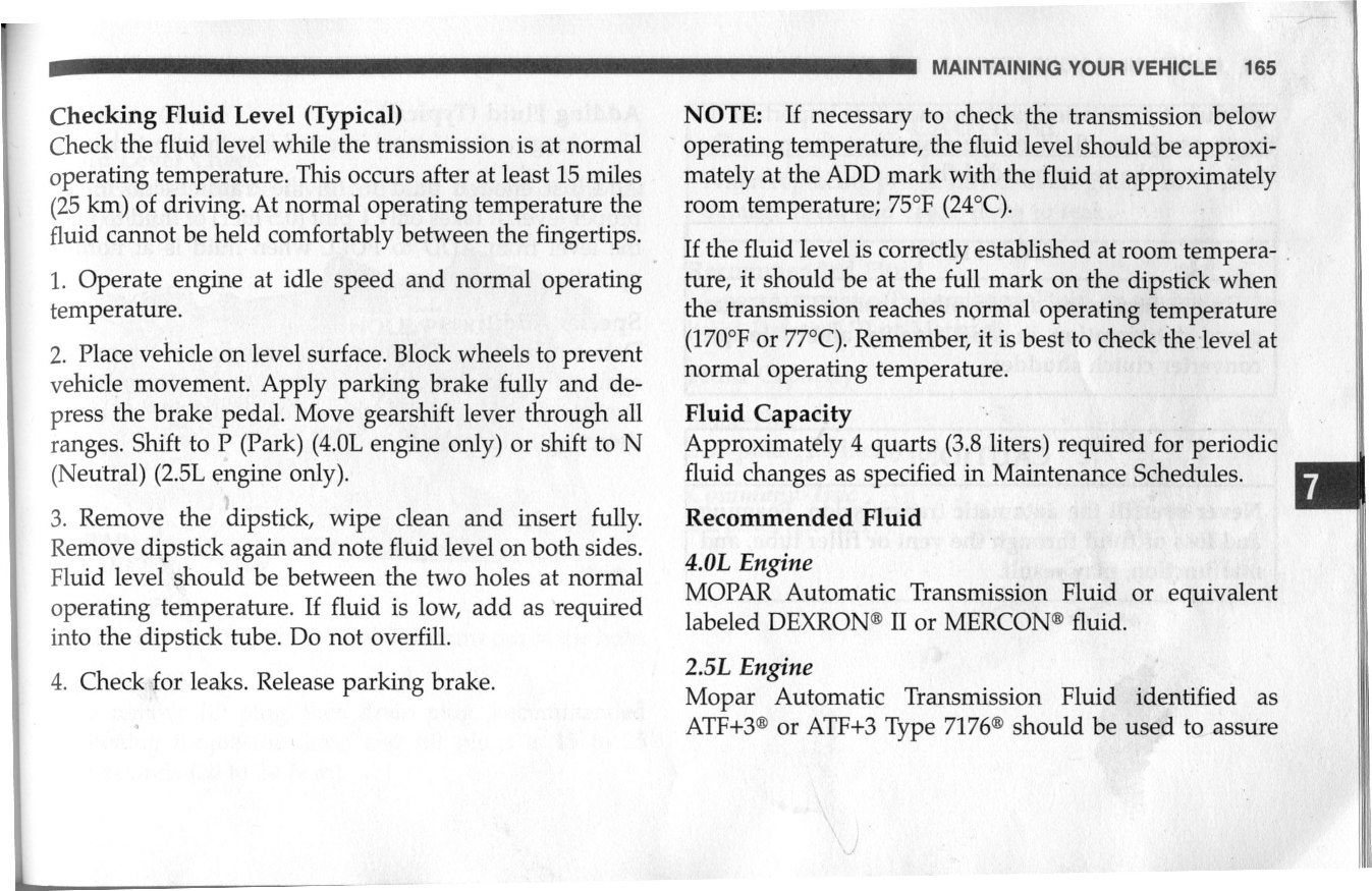 My owners manual which matches my '01 FSM says to check in park for a 4.0 and neutral for a 2.5.