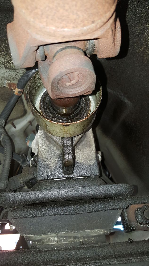 https://cimg7.ibsrv.net/gimg/www.che...4c59c9a36d.jpg Disconnect drive shaft from rear, push it forward, and remove it. Set somewhere safe https://cimg0.ibsrv.net/gimg/www.che...cbd9564c22.jpg https://cimg3.ibsrv.net/gimg/www.che...02dcfe1a9e.jpg Pull shaft from trans. By hand https://cimg4.ibsrv.net/gimg/www.che...3de816121c.jpg Spend the 20$ and buy a seal puller to remove trans. Seal https://cimg7.ibsrv.net/gimg/www.che...26dbfb4cef.jpg I used a piece of 1.5 inch pvc. Work slow and be patient or you will rip the seal. Take your time. Seriously. |
