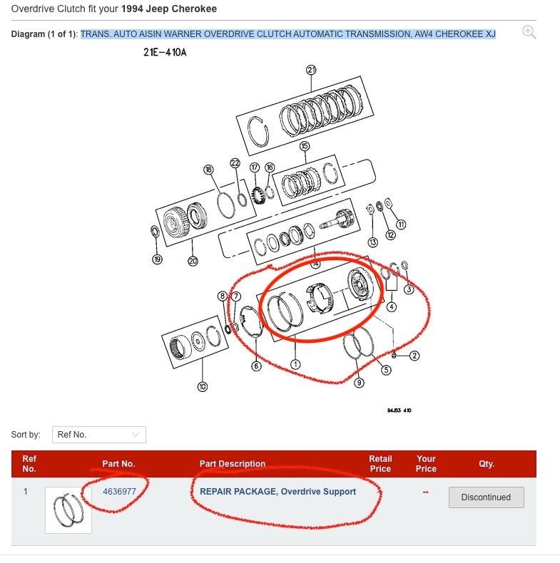 My 1994 XJ transmission gave up, (well it was about time after 350k + miles hehe) on a road trip to Mexico, I took it to a local repair shop, they will charge about 700 USD to fix, (rebuild) but they do not have this part (attached image) the "overdrive support package". Any idea where I can order it?