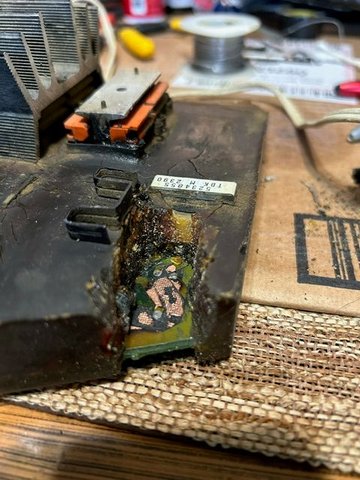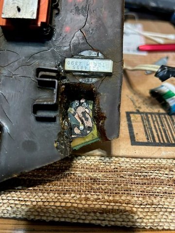 Well, during my attempted repair of the PCU for this 1991 Cherokee I was using the cap of a pen, the kind that has a clip to fasten to your shirt, the clip is plastic and makes for a perfect gel picker while being soft enough to not damage the PC Board. So, as I'm cleaning gel out I got down to where I could see the board and I noticed I could see copper. I thought, that's not good. It was a small piece, so I kept going. However, the capacitors were covering most of the area where I was working. Once I cleared around the caps and got the backside clear, I used my soldering iron and removed the capacitors. Thats when I noticed the burnt black goo that I noticed running on top of the gel in one of my first photos posted. The bottom of the 470uF resistor was blown out, the gel was all discolored around it, and there was black stuff running all the way under both resistors. As I cleared the black stuff away with a soft bristled toothbrush it revealed bare copper trace under all of it. I don't know what that black stuff was, but it caused the 220uF base holes to short. When I tested the negative side hole to the other hole my meter beeped. Neither of the other two capacitor holes showed connectivity between the two holes. All three negative holes are on one trace, they all rang out when tested. but that other hole should not be connected to the negative hole. Somewhere the negative trace is touching the other trace so I'm sending it to a local shop to have them finish the repair. This has gone beyond my scope of abilities. Also, I coach soccer and I should have been out with my team weeks ago... with my current situation this Jeep is my primary driver and the parents on my team are starting to send me emails asking when we are going to start practice, we have games in 3 weeks. It's time to give this project a rest and go buy a reliable car.