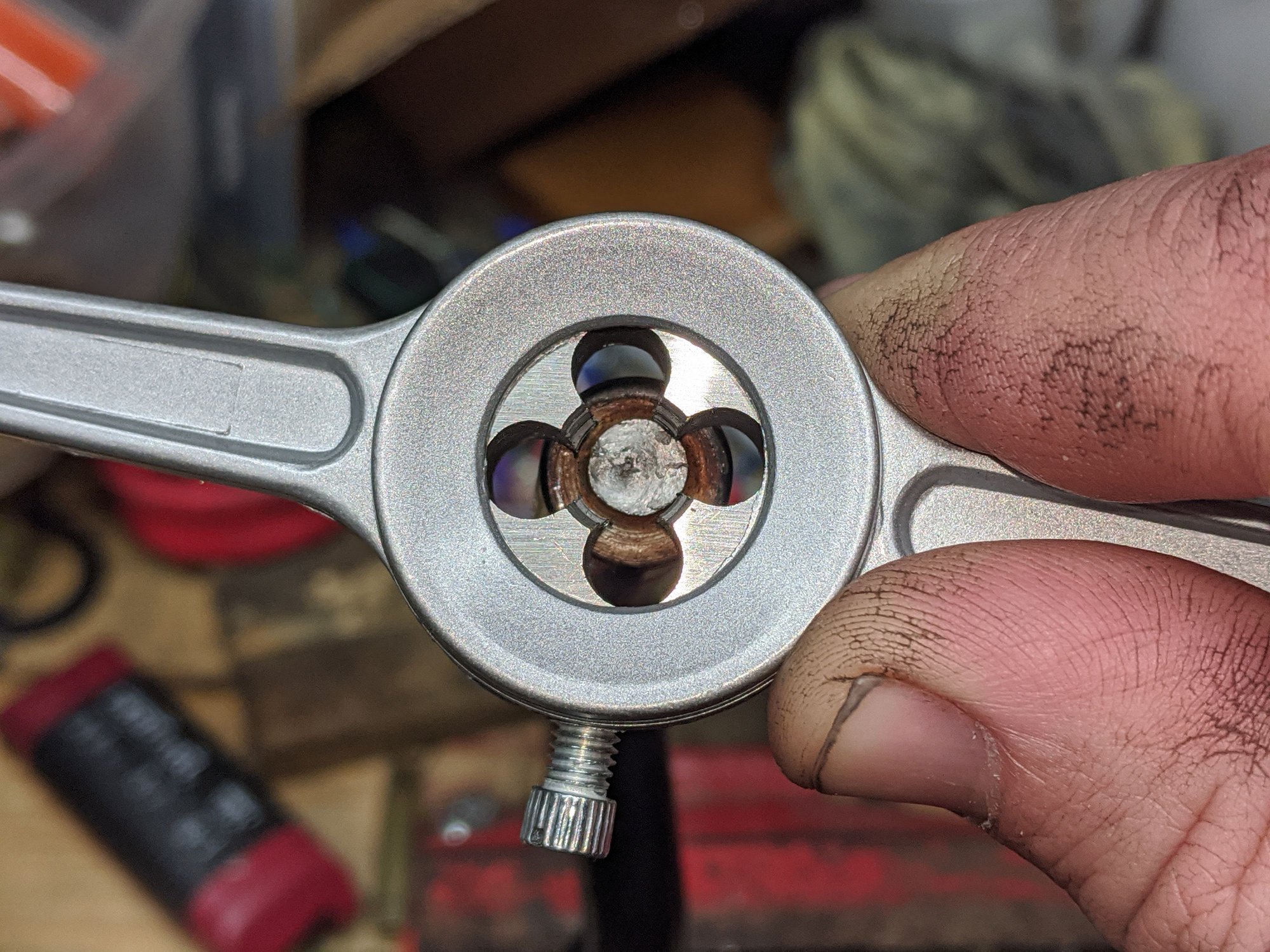 I quickly discovered that while the die was the correct size for the threads, the rod itself was far thicker.