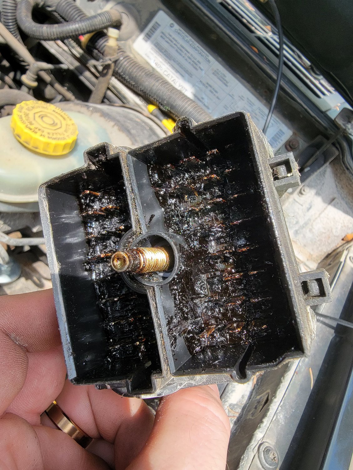 So, I'm back to working on the Jeep. I think I might know where the issue is at, finally. My multimeter is junk and doesn't read anything other than 1 in continuity or other settings. I was able to finally get the wiring harness going through the firewall (driver side, next to brake booster) out and unconnected. There is SO much gunk in there, and pretty much every single contact is black from oil, grease, dirt, etc.