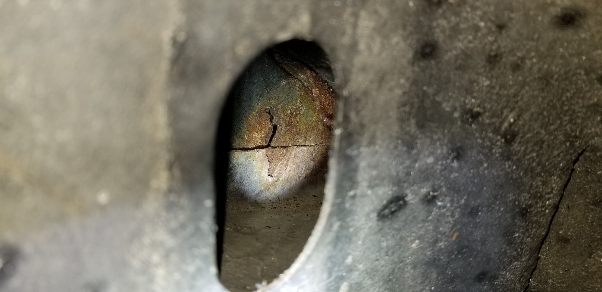This is viewing the crack from inside wheel well access hole.