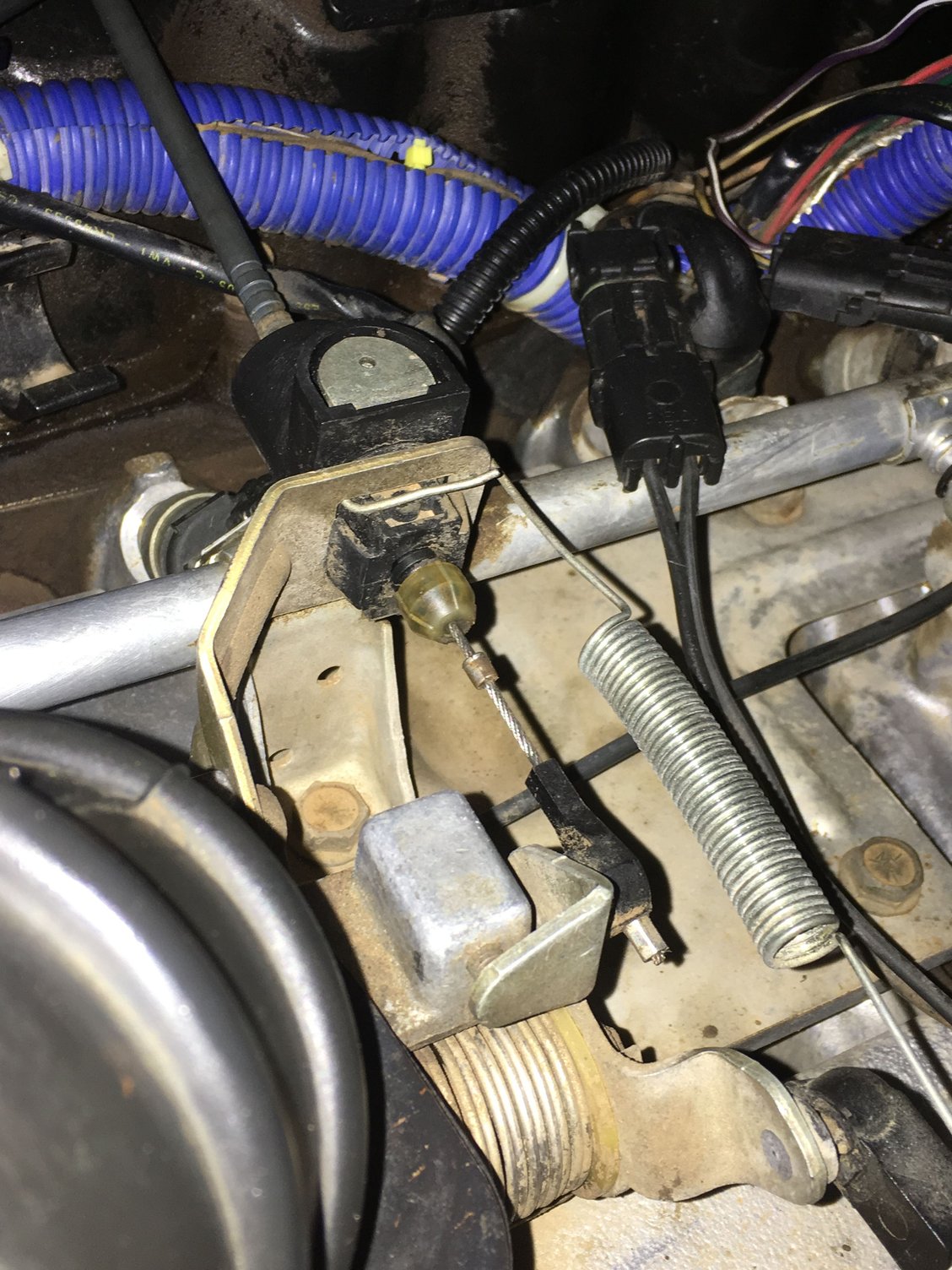 My next step was going to be adjusting the TV cable, then checking the TPS. Well, my TV Cable doesn’t adjust...I push the button, slide the black collar piece all the way back away from the throttle linkage, then release the button. When I open the throttle all the way, the collar doesn’t “ratchet” into place like I’ve always seen. It doesn’t move at all. The cable just slides out of the collar I moved, without adjusting it.